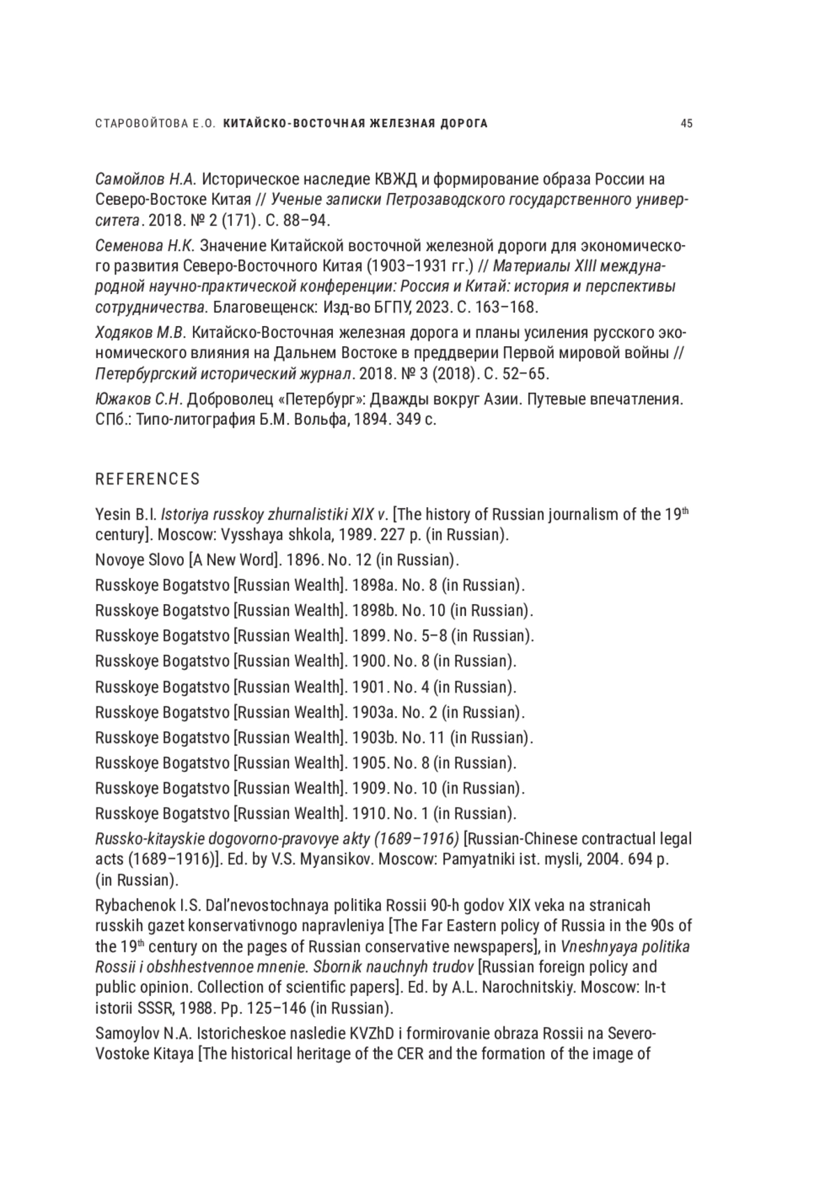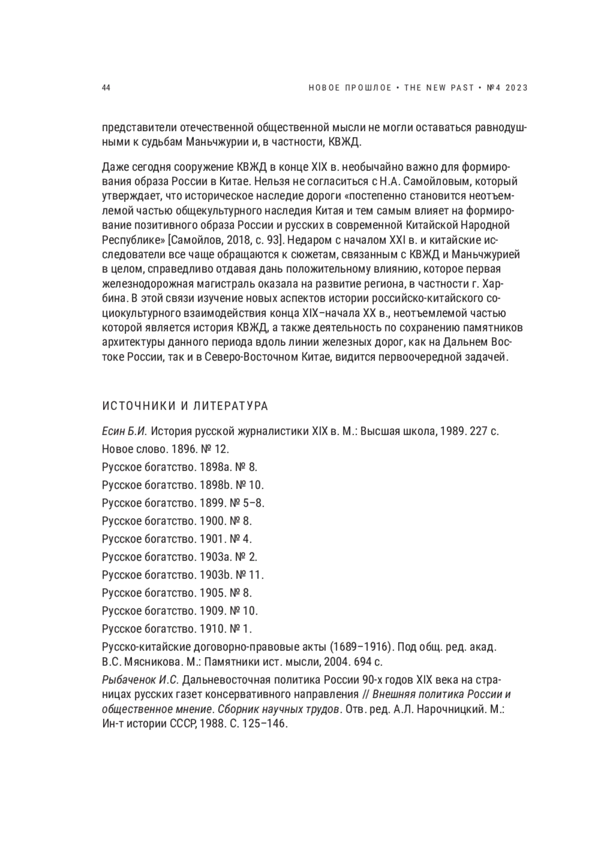 СТАРОВОЙТОВА Е. О. КИТАЙСКО-ВОСТОЧНАЯ ЖЕЛЕЗНАЯ ДОРОГА В ОСВЕЩЕНИИ ОТЕЧЕСТВЕННЫХ НАРОДНИЧЕСКИХ ИЗДАНИЙ КОНЦА XIX-НАЧАЛА XX В // НОВОЕ ПРОШЛОЕ. 2023. № 4