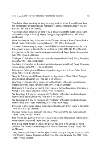 51. 李世鈞 (Ли Шицзюнь). 甲午戰後滿清與帝俄外交關係之研究(一八九五 一九 一) (Исследование по дипломатическим отношениям между маньчжурской Цин и императорской Россией после Китайско-Японской войны): магистерская диссертация 中國文化大學 (Китайского университета культуры). Тайбэй, 1980.