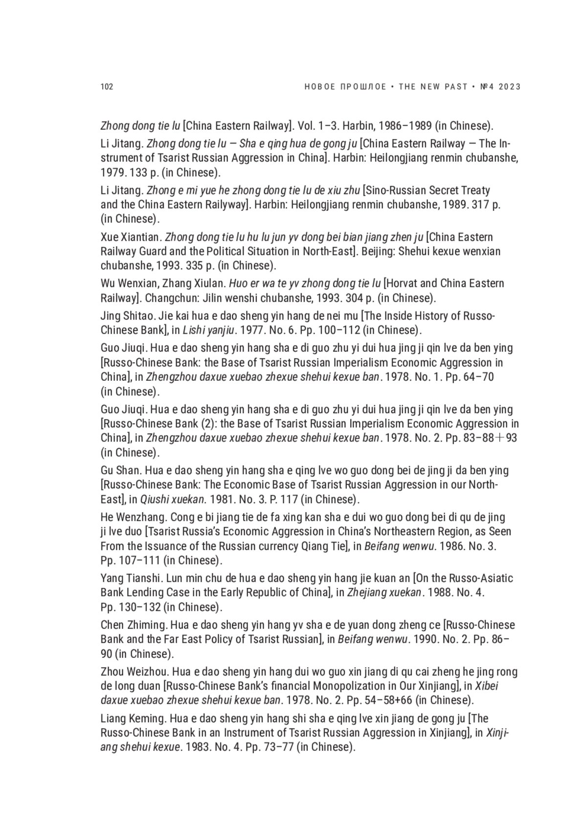 26. 郭久祺 (Го Цзюци). 华俄道胜银行(续)-沙俄帝国主义对华经济侵略大本营 (Русско-Китайский (Азиатский) банк - база экономического вторжения империализма царской России в Китай (продолжение)) // 郑州大学学报哲学社会科学版 (Вестник Чжэнчжоуского университета. Серия: философия и социальные науки). 1978b. № 2. С. 83-88 93.