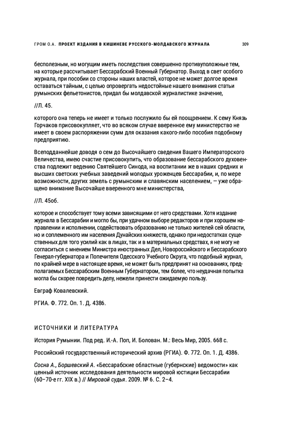 3. Сосна А., Боршевский А. “Бессарабские областные (губернские) ведомости” как ценный источник исследования деятельности мировой юстиции Бессарабии (60-70 е гг. XIX в.) // Мировой судья. 2009. № 6. С. 2-4. EDN: KPATVT