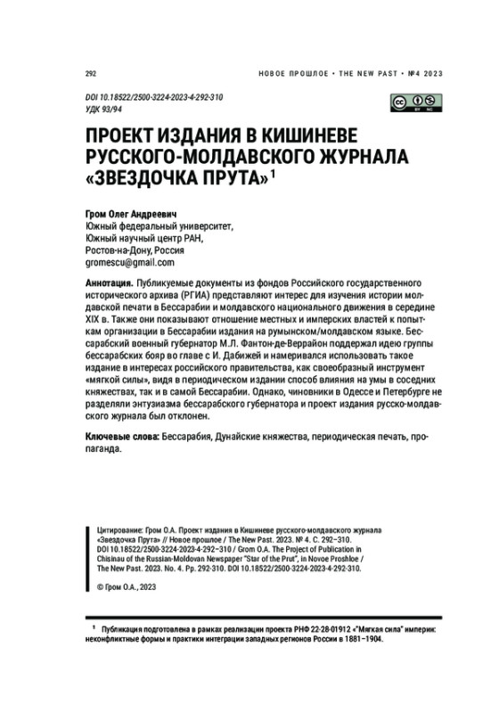 Публикуемые документы из фондов Российского государственного исторического архива (РГИА) представляют интерес для изучения истории молдавской печати в Бессарабии и молдавского национального движения в середине XIX в. Также они показывают отношение местных и имперских властей к попыткам организации в Бессарабии издания на румынском/молдавском языке. Бессарабский военный губернатор М. Л. Фантон-де-Веррайон поддержал идею группы бессарабских бояр во главе с И. Дабижей и намеривался использовать такое издание в интересах российского правительства, как своеобразный инструмент «мягкой силы», видя в периодическом издании способ влияния на умы в соседних княжествах, так и в самой Бессарабии. Однако, чиновники в Одессе и Петербурге не разделяли энтузиазма бессарабского губернатора и проект издания русско-молдавского журнала был отклонен