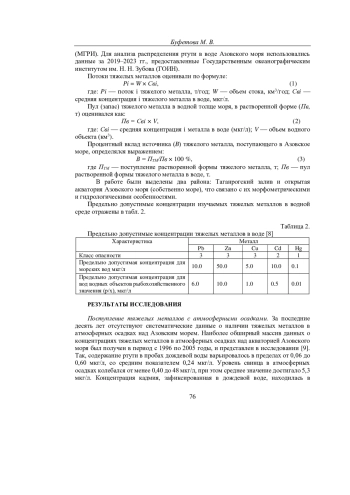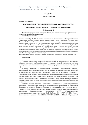 БУФЕТОВА М. В. ПОСТУПЛЕНИЕ ТЯЖЕЛЫХ МЕТАЛЛОВ В АЗОВСКОЕ МОРЕ С КОМПОНЕНТАМИ ВОДНОГО БАЛАНСА В 2019-2023 ГГ. // УЧЕНЫЕ ЗАПИСКИ КРЫМСКОГО ФЕДЕРАЛЬНОГО УНИВЕРСИТЕТА ИМЕНИ В. И. ВЕРНАДСКОГО. ГЕОГРАФИЯ. ГЕОЛОГИЯ. 2025. ТОМ 11 (77). № 4
