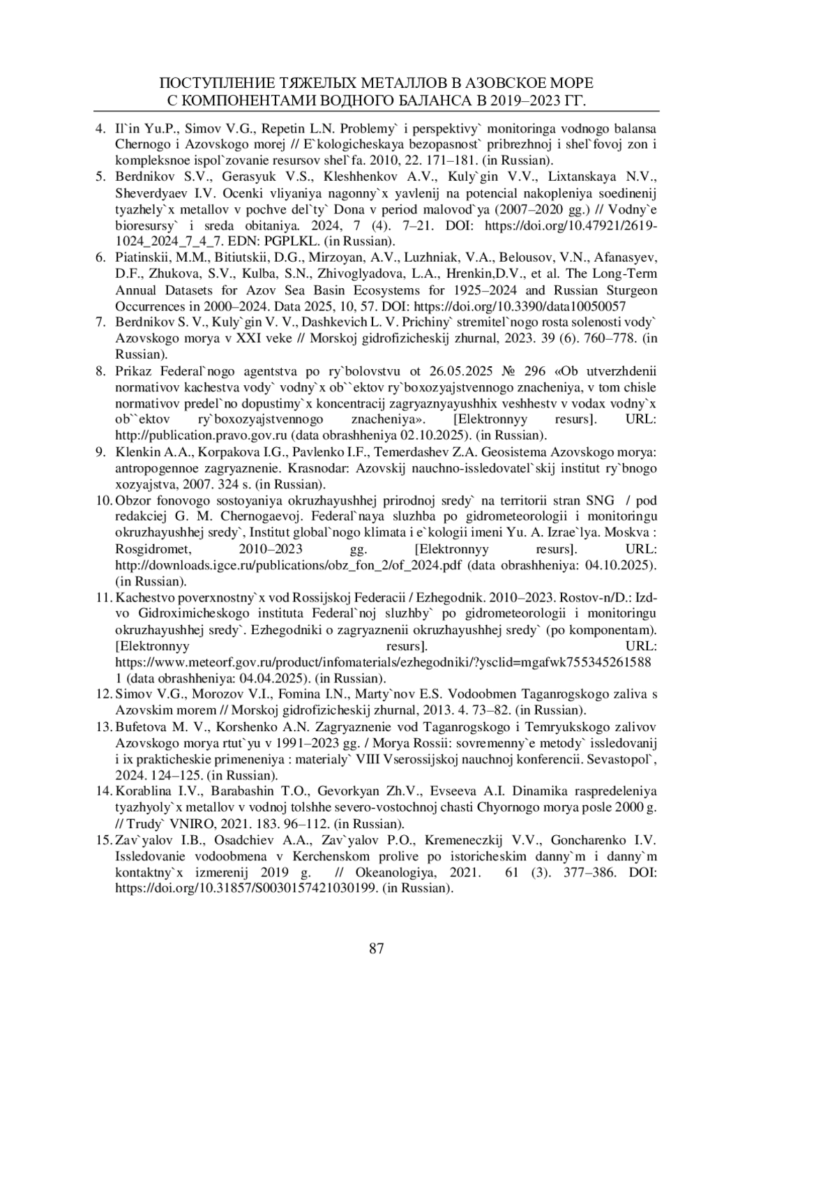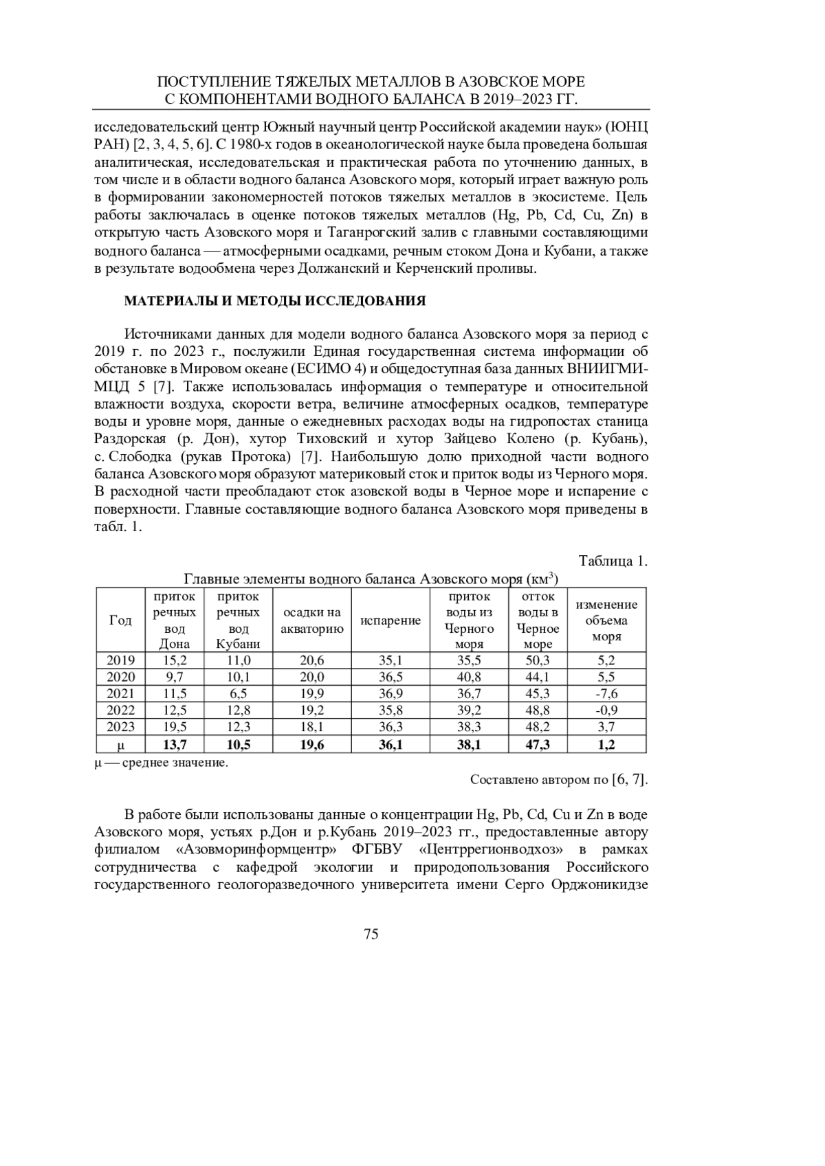 Статья: ПОСТУПЛЕНИЕ ТЯЖЕЛЫХ МЕТАЛЛОВ В АЗОВСКОЕ МОРЕ С КОМПОНЕНТАМИ ВОДНОГО БАЛАНСА В 2019-2023 ГГ. (2025)