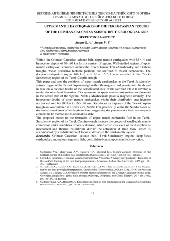 4. Стогний В.В., Стогний Г.А. Формирование верхнемантийных землетрясений Крымско-Кавказской сейсмической зоны // Геология, география и глобальная энергия. 2017. № 3(66). С. 140-150.