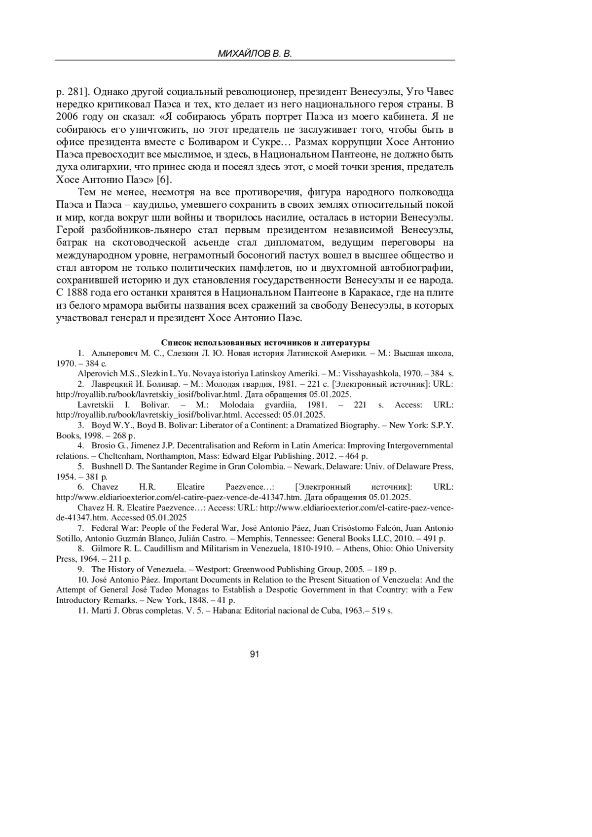 6. Chavez H.R. Elcatire Paezvence.: [Электронный источник]: URL: http://www.eldiarioexterior.com/el-catire-paez-vence-de-41347.htm. Дата обращения 05.01.2025. Chavez H. R. Elcatire Paezvence.: Access: URL: http://www.eldiarioexterior.com/el-catire-paez-vence-de-41347.htm. Accessed 05.01.2025.