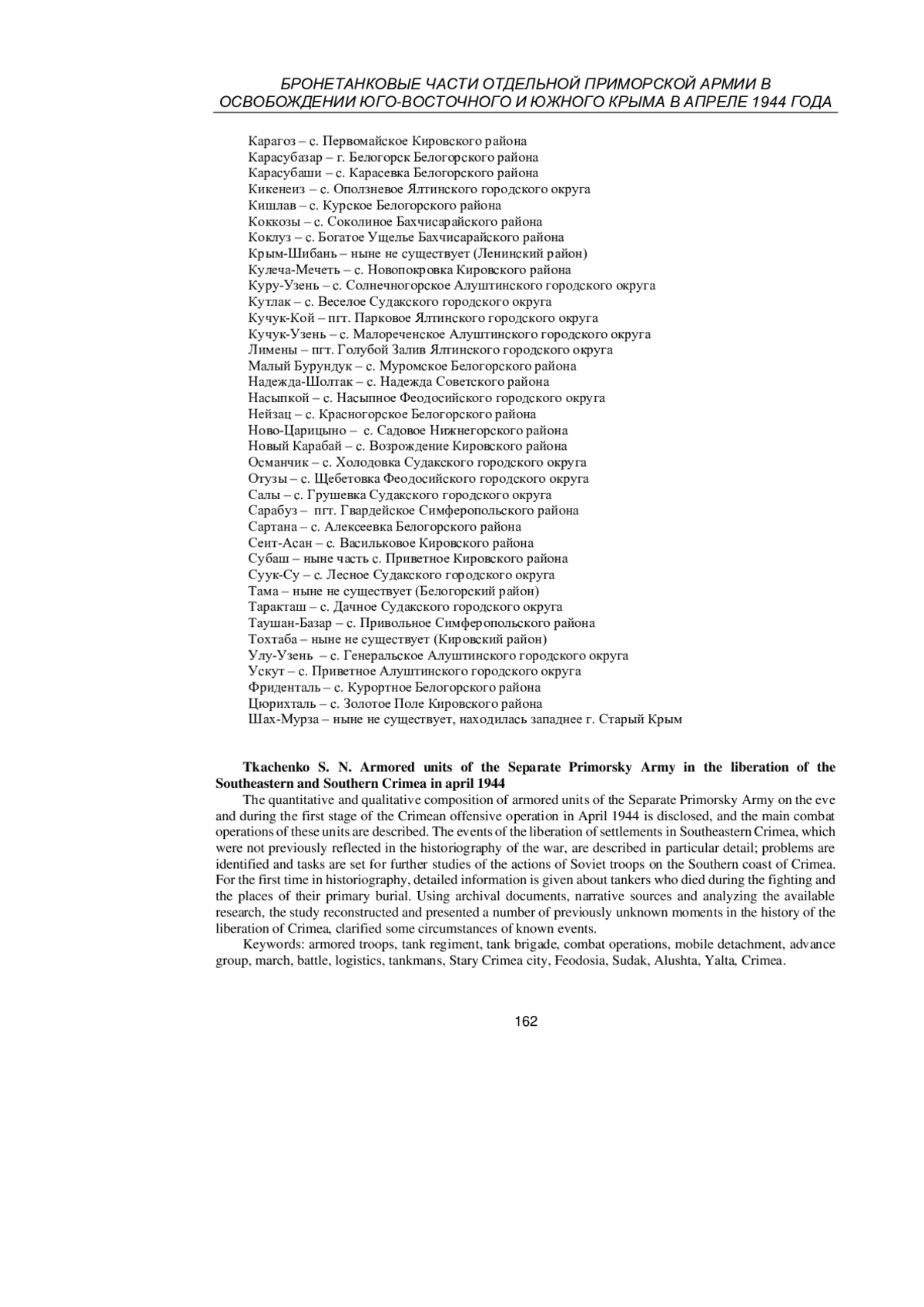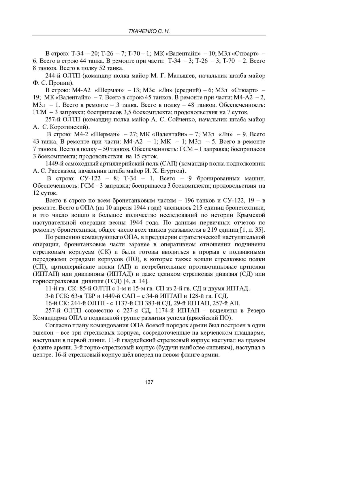 54. Ткаченко С. Н. Советское военное искусство в Крымской стратегической наступательной операции (апрель - май 1944 г.) // Крым, 1944: Весна освобождения / авт.-сост. С. Н. Ткаченко. - М.: Вече, 2014. - С. 484-501.