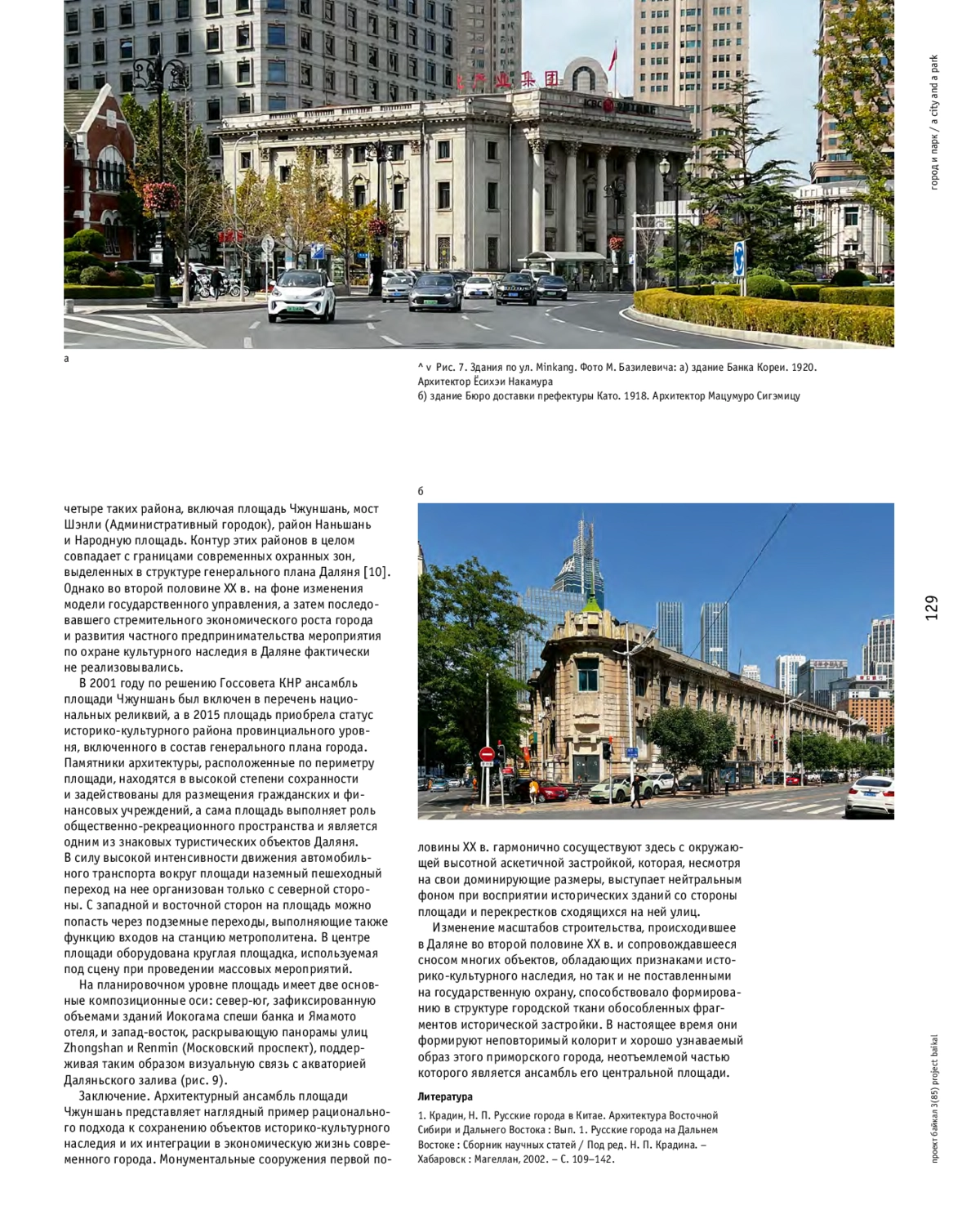 БАЗИЛЕВИЧ М. Е. АРХИТЕКТУРНЫЙ АНСАМБЛЬ ПЛОЩАДИ ЧЖУНШАНЬ В ДАЛЯНЕ // ПРОЕКТ БАЙКАЛ. 2025. № 85, ТОМ 22