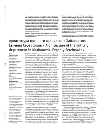 Ключевые фразы: архитектура дальнего востока, НАСЛЕДИЕ, ленинградская архитектурная школа, ВОЕННОЕ СТРОИТЕЛЬСТВО, евгений серебряков