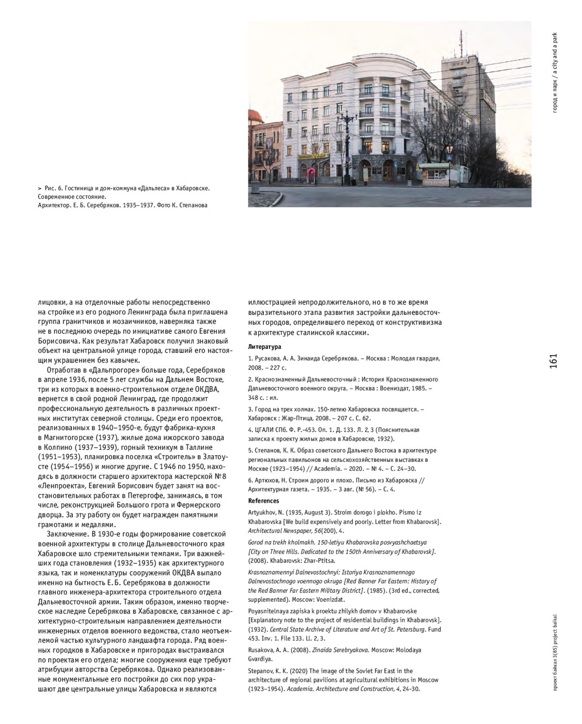 СТЕПАНОВ К., БАЗИЛЕВИЧ М. Е., ИВАНОВА А. АРХИТЕКТУРА ВОЕННОГО ВЕДОМСТВА В ХАБАРОВСКЕ. ЕВГЕНИЙ СЕРЕБРЯКОВ // ПРОЕКТ БАЙКАЛ. 2025. № 85, ТОМ 22