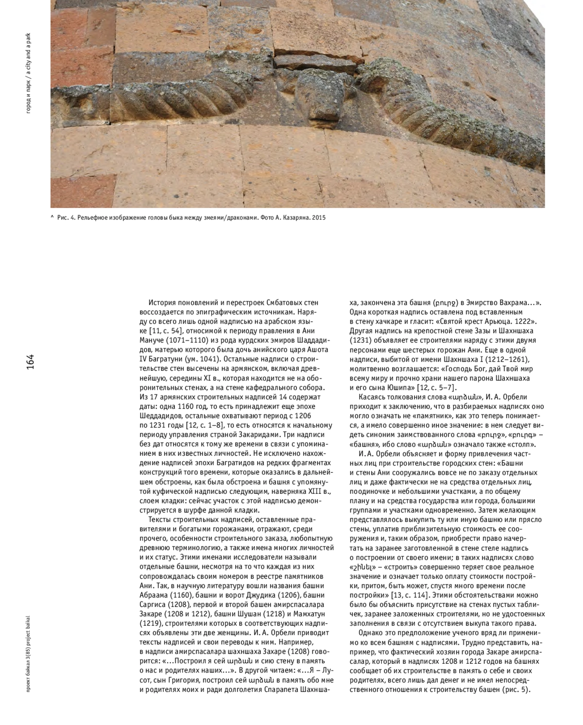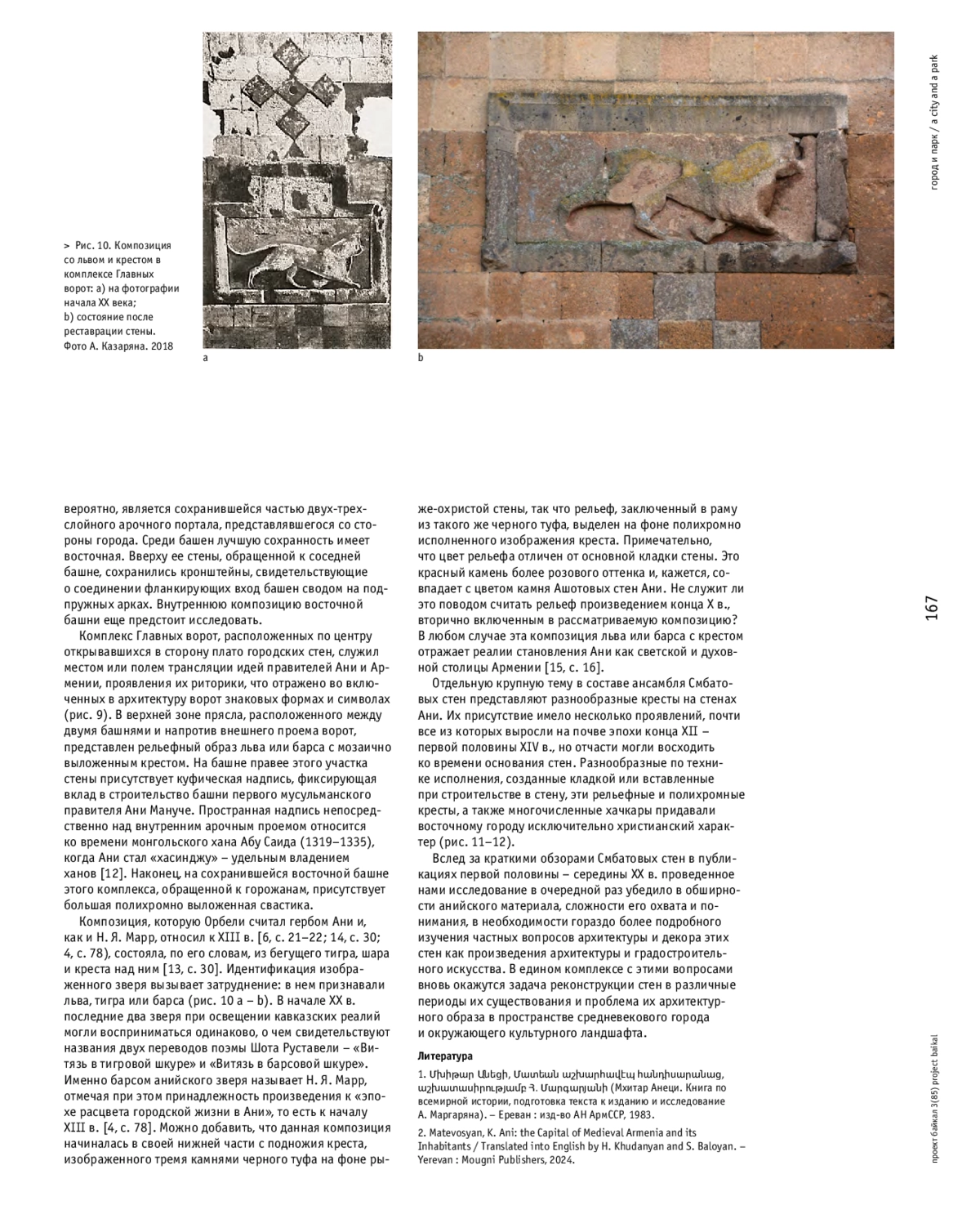 10. Kazaryan, A. The City of Ani: Constructing a Medieval Capital in the Christian Orient // Architecture and Visual Culture in the Late Antique and Medieval Mediterranean. Studies in Honor of Robert G. Ousterhout / Ed. by Vasileios Marinis, Amy Papalexandrou and Jordan Pickett. - Turnhout: Brepols Publishers, 2020. - P. 241-252.
