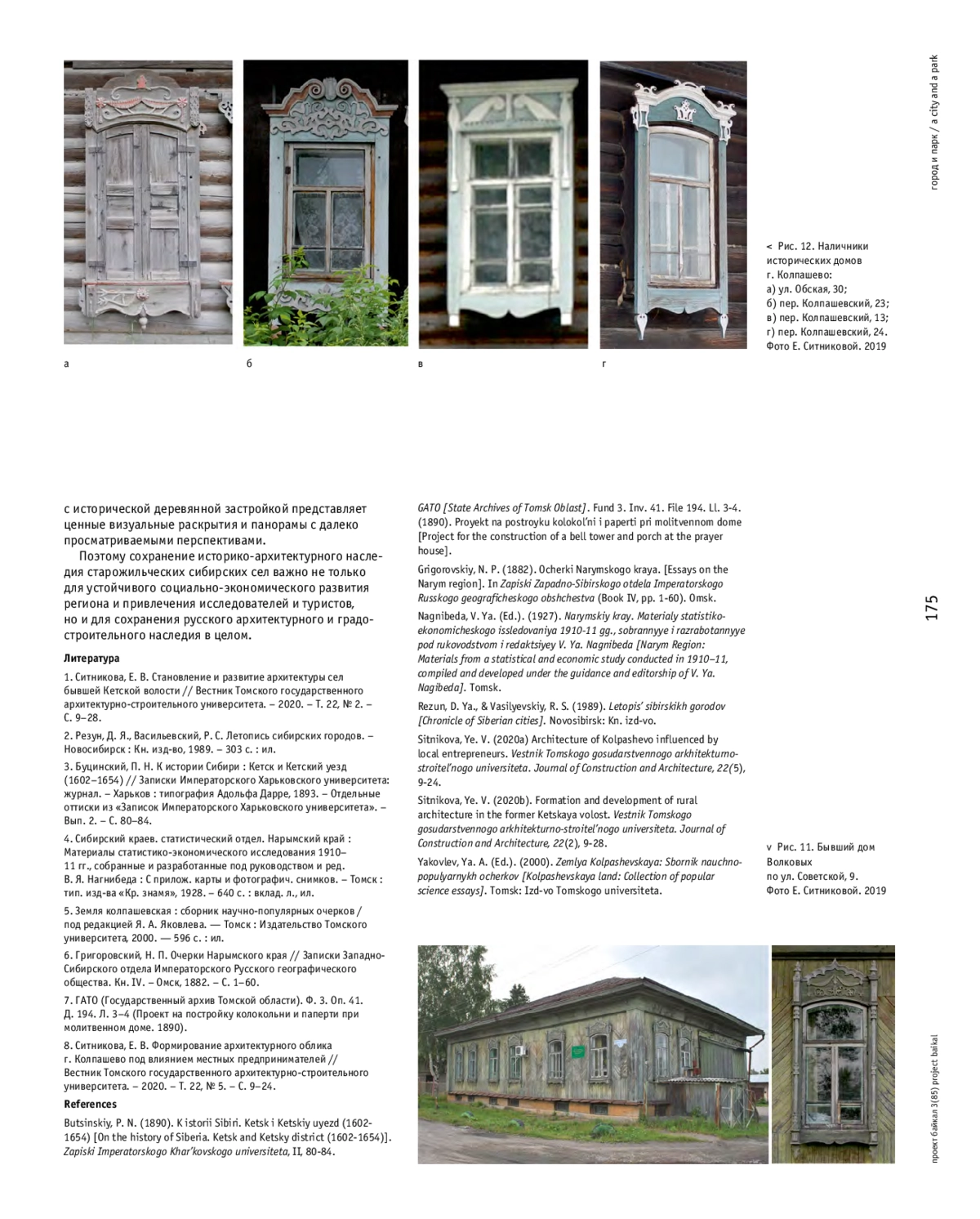 8. Ситникова, Е. В. Формирование архитектурного облика г. Колпашево под влиянием местных предпринимателей // Вестник Томского государственного архитектурно-строительного университета. - 2020. - Т. 22, № 5. - С. 9-24.