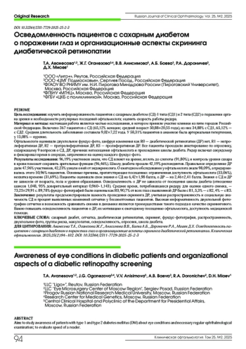 8. Abdulaal A.E., Alobaid O.M., Alotaibi A.G. et al. Diabetic patients’ awareness of diabetic retinopathy symptoms and complications. J Family Med Prim Care. 2019;8(1):49-53. DOI: 10.4103/jfmpc.jfmpc_349_18