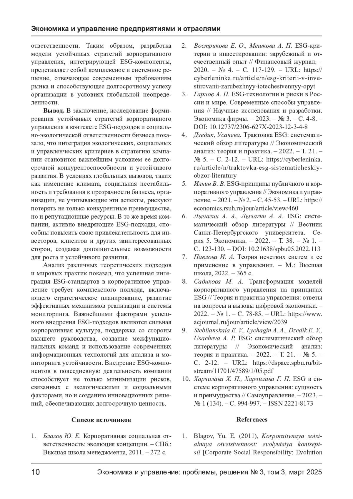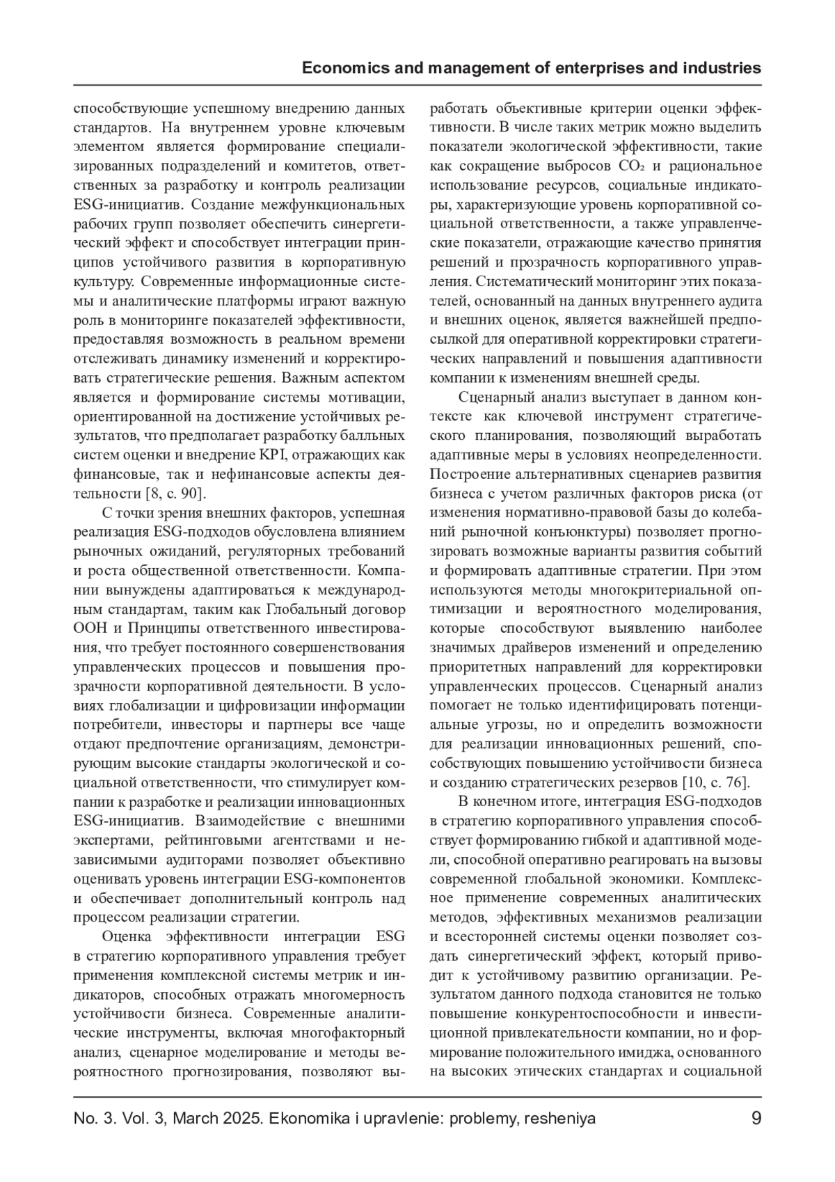 Статья посвящена исследованию формирования устойчивых стратегий корпоративного управления в контексте интеграции ESG-подходов (экологические, социальные и управленческие факторы) и социально-экологической ответственности бизнеса. Рассмотрены основные теоретические основы корпоративного управления и роль ESG в современных стратегиях организаций. Описаны механизмы внедрения ESG-стандартов, включая внутренние и внешние факторы, а также предложены подходы к оценке эффективности таких стратегий через использование специализированных метрик и индикаторов. В статье анализируются лучшие мировые практики и кейс-стади, что позволяет сформировать рекомендации для российских компаний по адаптации и внедрению ESG-подходов в рамках устойчивого корпоративного управления. Особое внимание уделяется важности учета социально-экологических факторов для повышения прозрачности, улучшения имиджа и привлечения инвестиций.