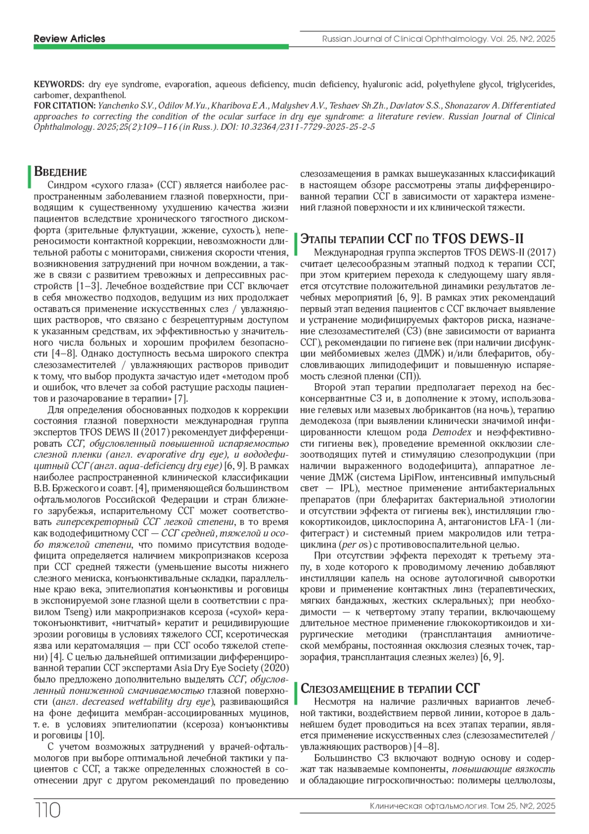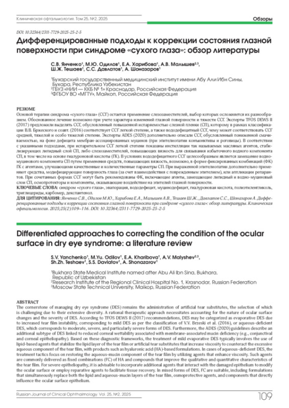 8. Wolffsohn J.S., Semp D.A., Dutta D. et al. Clinical practice patterns in the management of dry eye disease: A TFOS international survey 2023-24. Ocul Surf. 2025;36:164-172. DOI: 10.1016/j.jtos.2024.12.008