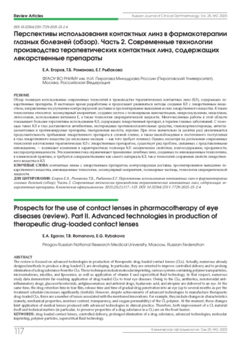 81. Bengani L.C., Kobashi H., Ross A.E. et al. Steroid-eluting contact lenses for corneal and intraocular inflammation. Acta Biomater. 2020;116:149-161. DOI: 10.1016/j.actbio.2020.08