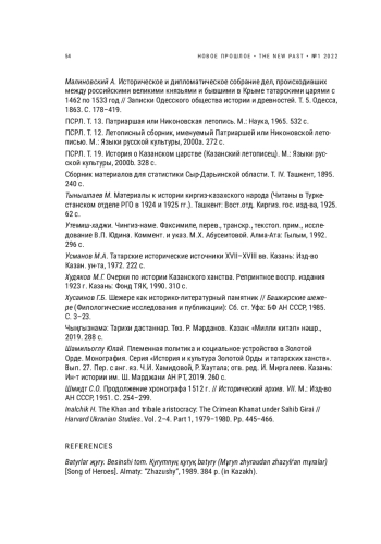 20. Усманов М.А. Татарские исторические источники XVII-XVIII вв. Казань: Изд-во Казан. ун-та, 1972. 222 с.