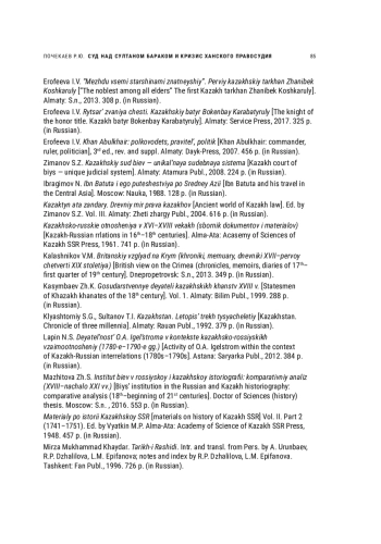 10. Ерофеева И.В. “Между всеми старшинами знатнейший”. Первый казахский тархан Жанибек Кошкарулы. Алматы: Б.и., 2013. 308 с.