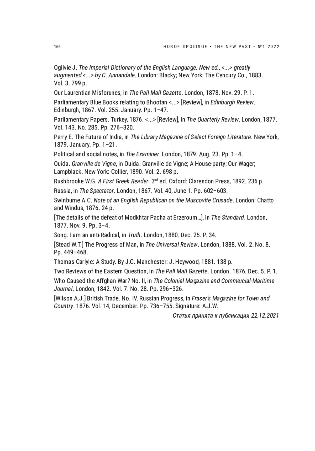 42. [Wilson A.J.] British Trade. No. IV. Russian Progress, in Fraser’s Magazine for Town and Country. 1876. Vol. 14, December. Pp. 736-755. Signature: A.J.W.