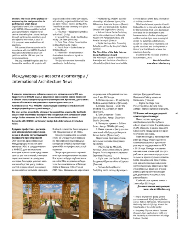ГРИГОРЬЕВА А. МЕЖДУНАРОДНЫЕ НОВОСТИ АРХИТЕКТУРЫ // ПРОЕКТ БАЙКАЛ. 2025. № 84, ТОМ 22