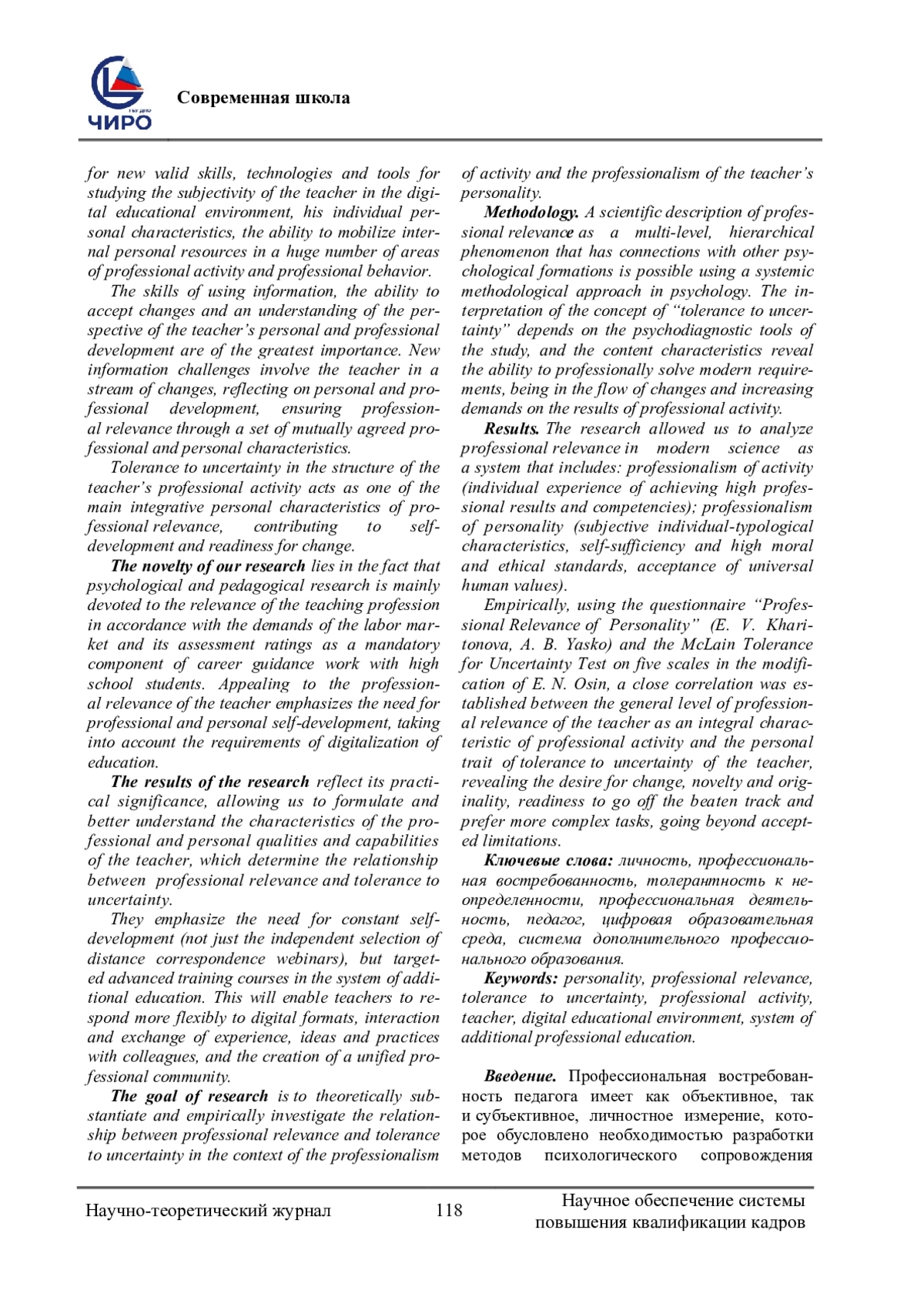 Проблема исследования и обоснование ее актуальности. Актуальность исследования обусловлена ситуацией решения ряда методологических вопросов и проблем в российской системе образования, которая диктует педагогу новую субъектность, использование личностных возможностей и ресурсов, для разрешения быстроменяющихся образовательных нестандартных профессиональных задач. Маршрутная карта трансформации необходимых изменений базируется на цифровизации образования, создании и внедрении инноваций и уникальных образовательных практик. Это, в свою очередь, диктует поиск новых валидных навыков, технологий и инструментов исследования субъектности педагога в цифровой образовательной среде, его индивидуально-личностных характеристик, способности к мобилизации внутренних личностных ресурсов по огромному количеству направлений осуществления профессиональной деятельности и профессионального поведения.