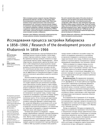 Ключевые фразы: ХАБАРОВСК, архитектура, ГРАДОСТРОИТЕЛЬСТВО, история, районная застройка, планировочный анализ