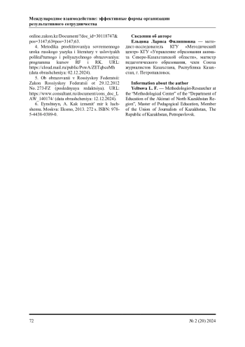 4. Методика проектирования современного урока русского языка и литературы в условиях поликультурного и полиязычного образования: программа курсов РФ и РК. - URL: https://cloud.mail.ru/public/PswA/ZETqbceMh (дата обращения: 02.12.2024).