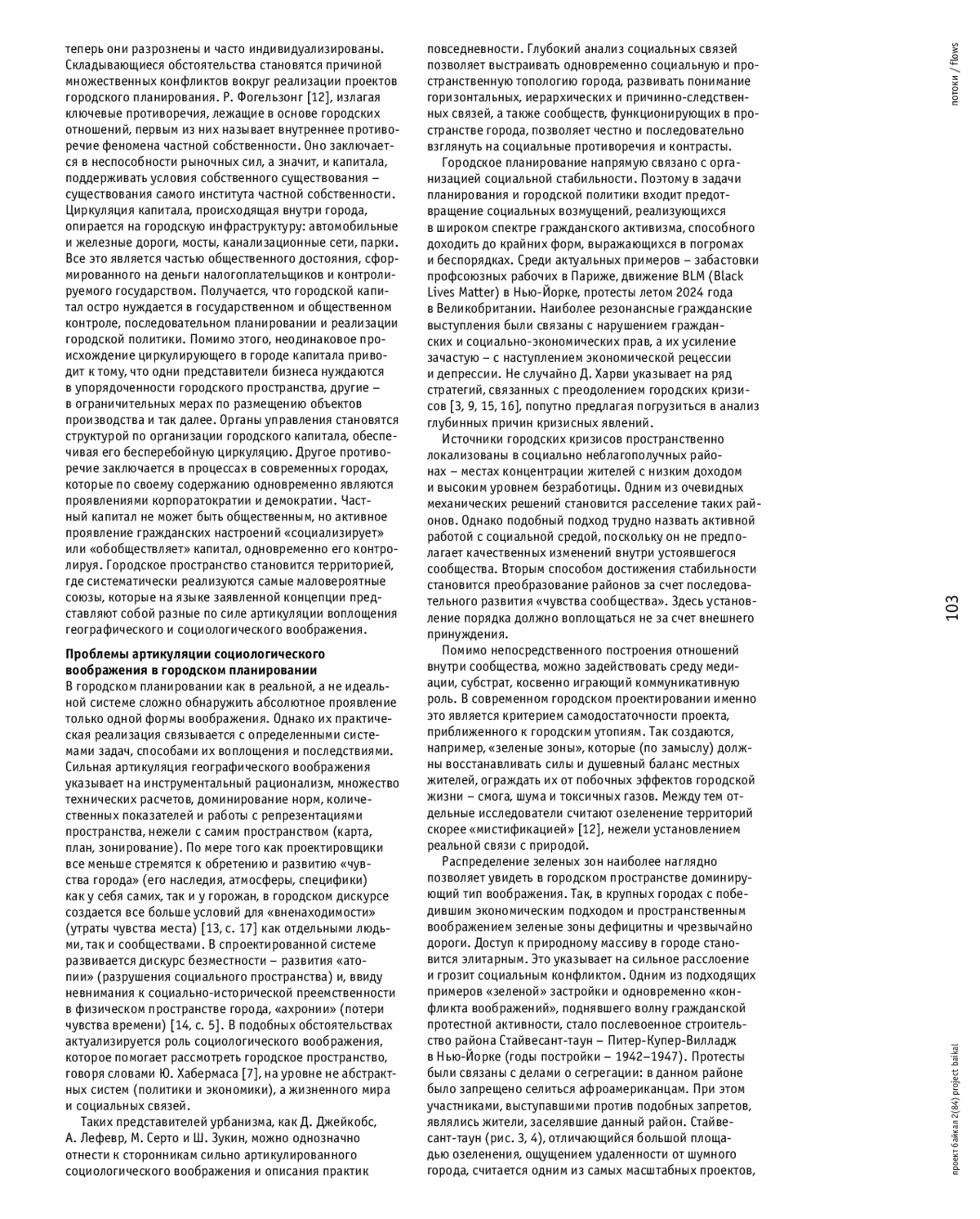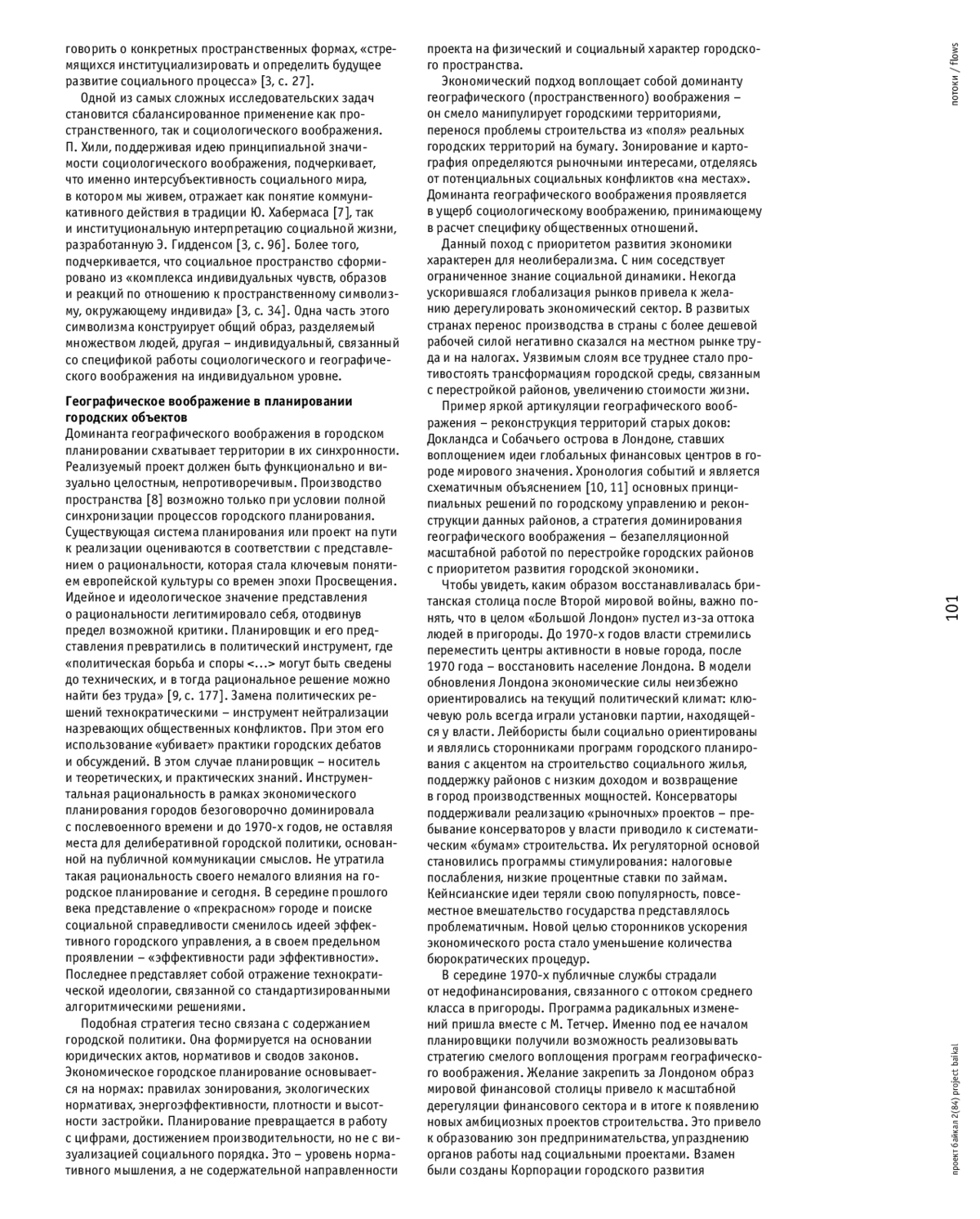 КОСТИНА А. О. ГЕОГРАФИЧЕСКОЕ И СОЦИОЛОГИЧЕСКОЕ ВООБРАЖЕНИЕ В ДИСКУРСЕ УРБАНИЗМА // ПРОЕКТ БАЙКАЛ. 2025. № 84, ТОМ 22
