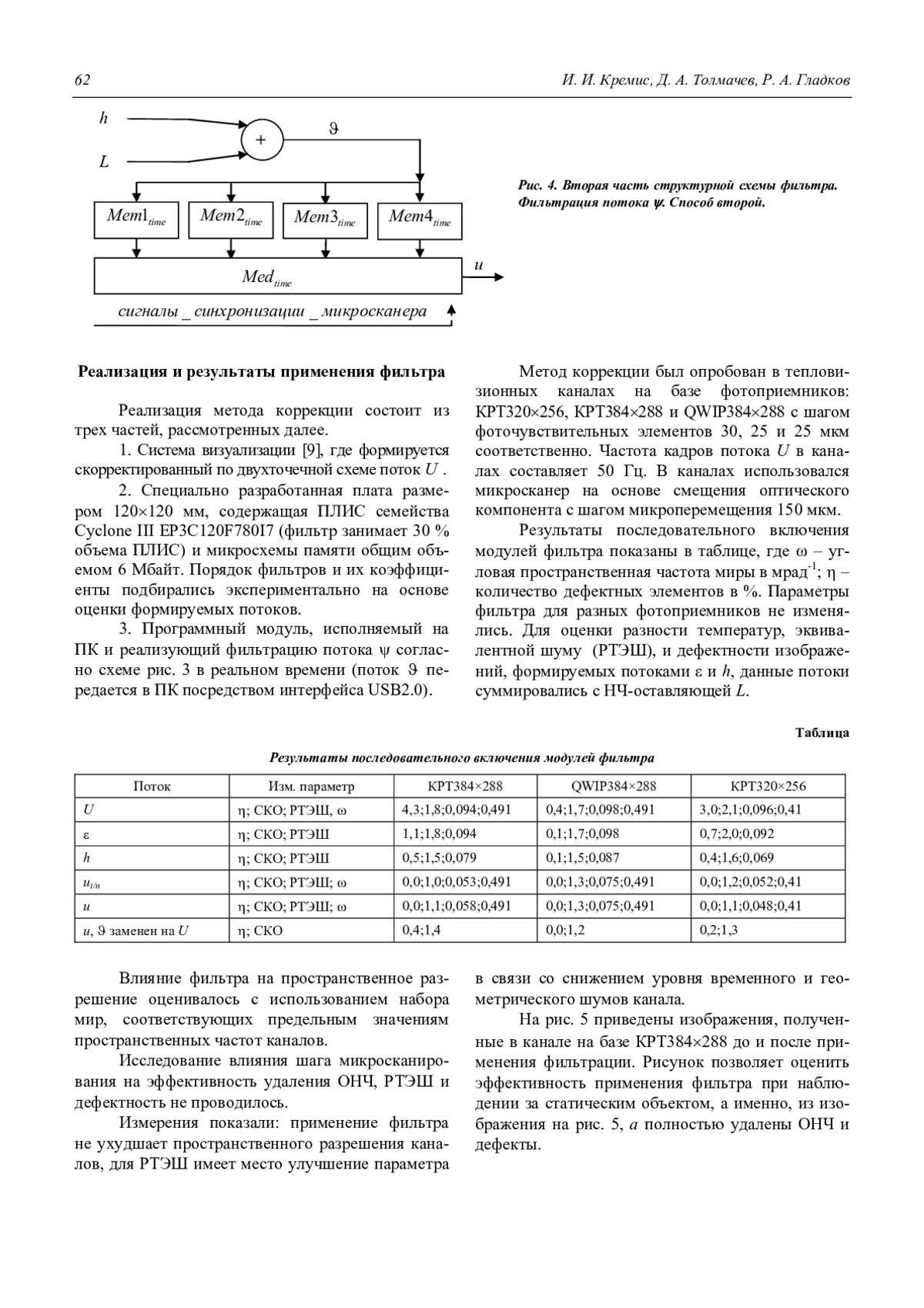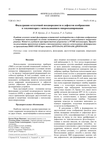 Кремис И. И., Толмачев Д. А., Гладков Р. А. Фильтрация остаточной неоднородности и дефектов изображения в тепловизорах с использованием микросканирования 58