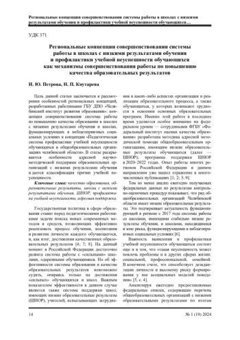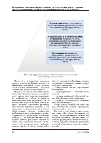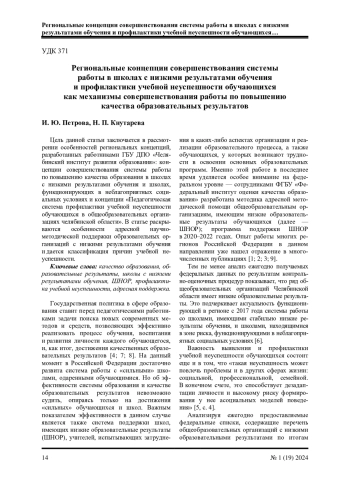 Цель данной статьи заключается в рассмотрении особенностей региональных концепций, разработанных работниками ГБУ ДПО «Челябинский институт развития образования»: концепции совершенствования системы работы по повышению качества образования в школах с низкими результатами обучения и школах, функционирующих в неблагоприятных социальных условиях и концепции «Педагогическая система профилактики учебной неуспешности обучающихся в общеобразовательных организациях Челябинской области». В статье раскрываются особенности адресной научно-методической поддержки общеобразовательных организаций с низкими результатами обучения и дается классификация причин учебной неуспешности.