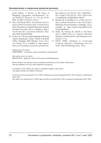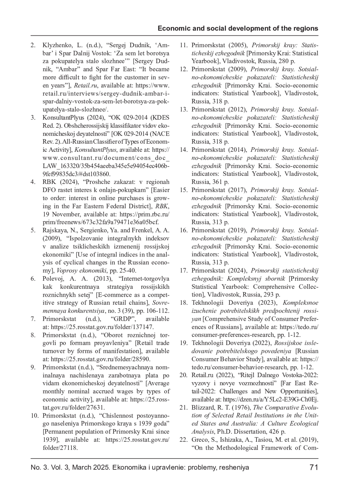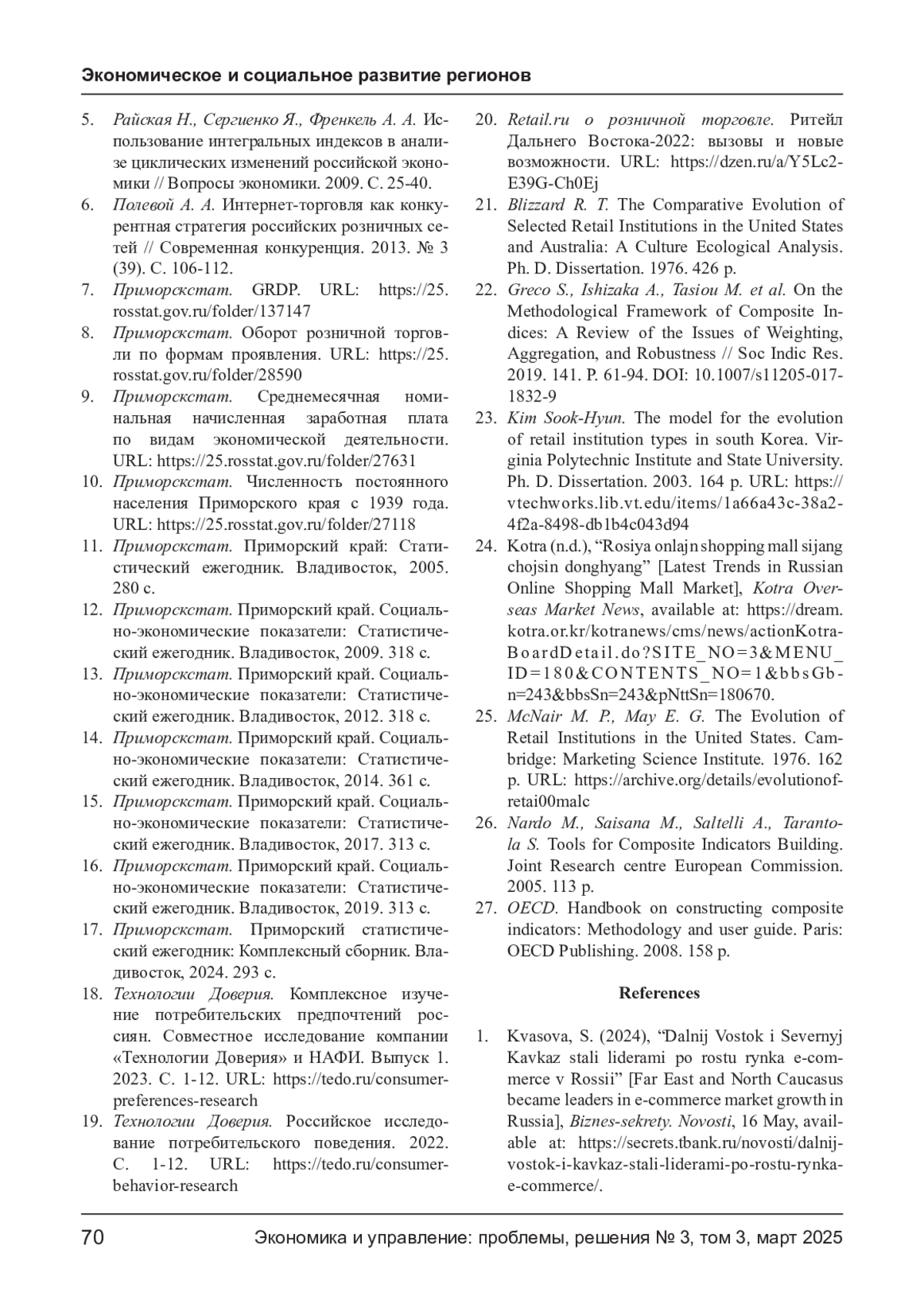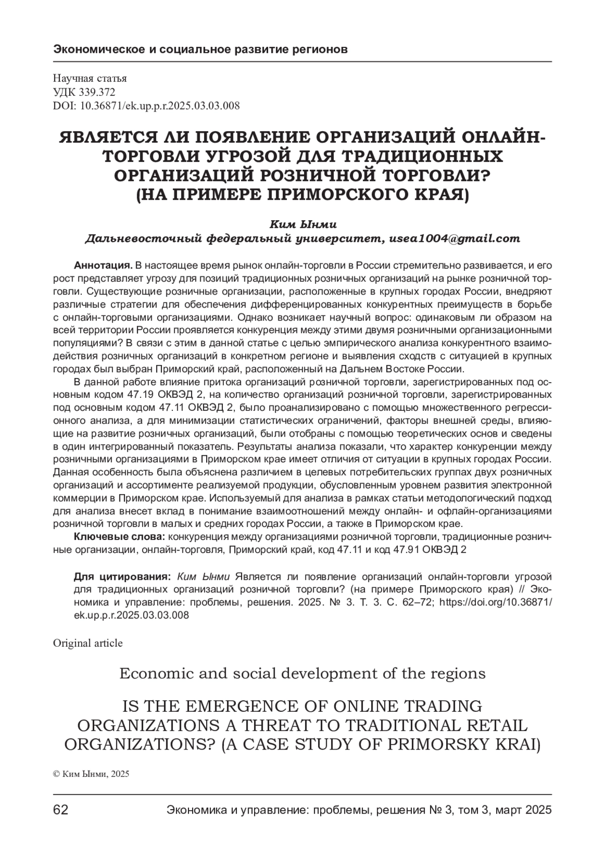 ЫНМИ К. ЯВЛЯЕТСЯ ЛИ ПОЯВЛЕНИЕ ОРГАНИЗАЦИЙ ОНЛАЙН-ТОРГОВЛИ УГРОЗОЙ ДЛЯ ТРАДИЦИОННЫХ ОРГАНИЗАЦИЙ РОЗНИЧНОЙ ТОРГОВЛИ? (НА ПРИМЕРЕ ПРИМОРСКОГО КРАЯ) // ЭКОНОМИКА И УПРАВЛЕНИЕ: ПРОБЛЕМЫ, РЕШЕНИЯ. 2025. ТОМ 3 № 3