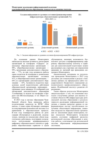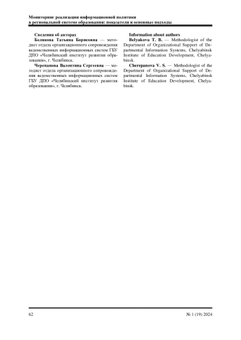 В статье приведены результаты мониторинга состояния функционирования информационно-коммуникационной инфраструктуры системы образования Челябинской области при реализации информационной политики. Актуализированы подходы к получению данных в ходе проведения мониторинга и показатели, характеризующие повышение «цифровой зрелости» региональной системы образования.