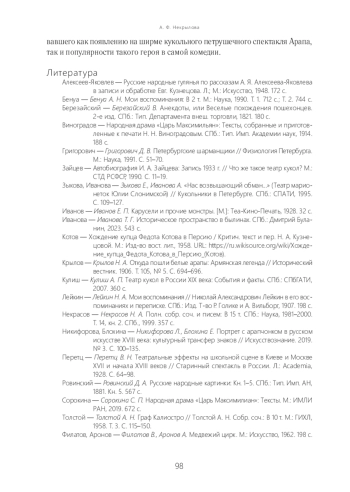 12. Кулиш А. П. Театр кукол в России XIX века: События и факты. СПб.: СПбГАТИ, 2007. 360 с.