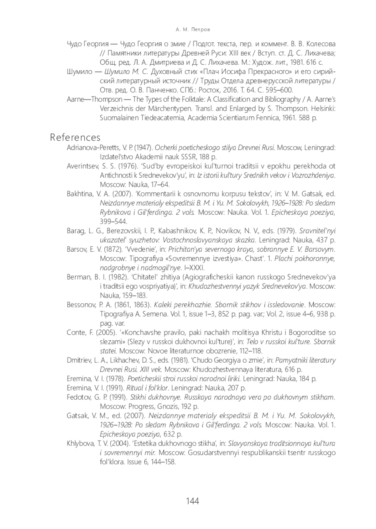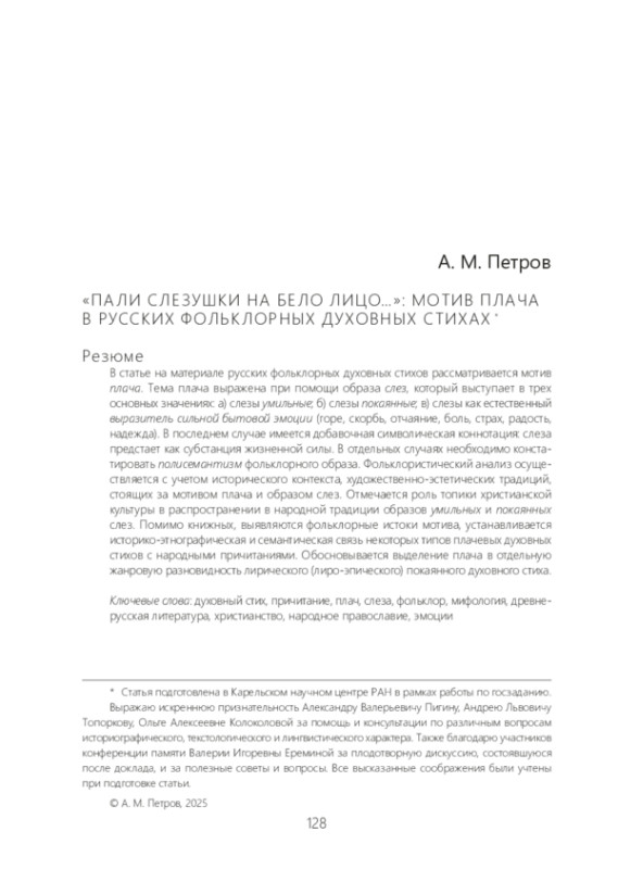 22. Петров А. М. Очерк поэтики русских духовных стихов: символика аквати ческих образов // Вестник Томского государственного университета. Сер.: Филология. 2021. № 69. С. 281-297.