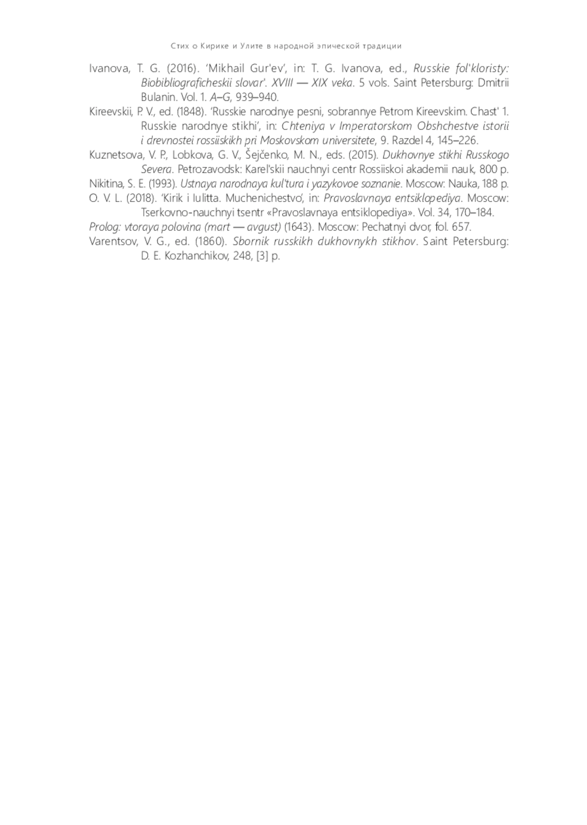 5. Иванова Т. Г. Михаил Гурьев // Русские фольклористы: Биобиблиогр. сло варь. XVIII-XIX вв.: В 5 т. / Под ред. Т. Г. Ивановой. СПб.: Дмитрий Буланин, 2016. Т. 1: А-Г. С. 939-940.