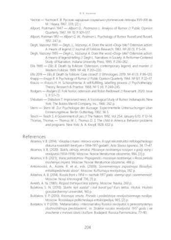 2. Аксенов В. Б. “Сказка о царе и мировой войне”, или опыт реконструк ции мифологического дискурса российских крестьян в 1914-1917 гг. // Acta Slavica Iaponica. 2014. Vol. 34. P. 17-47.
