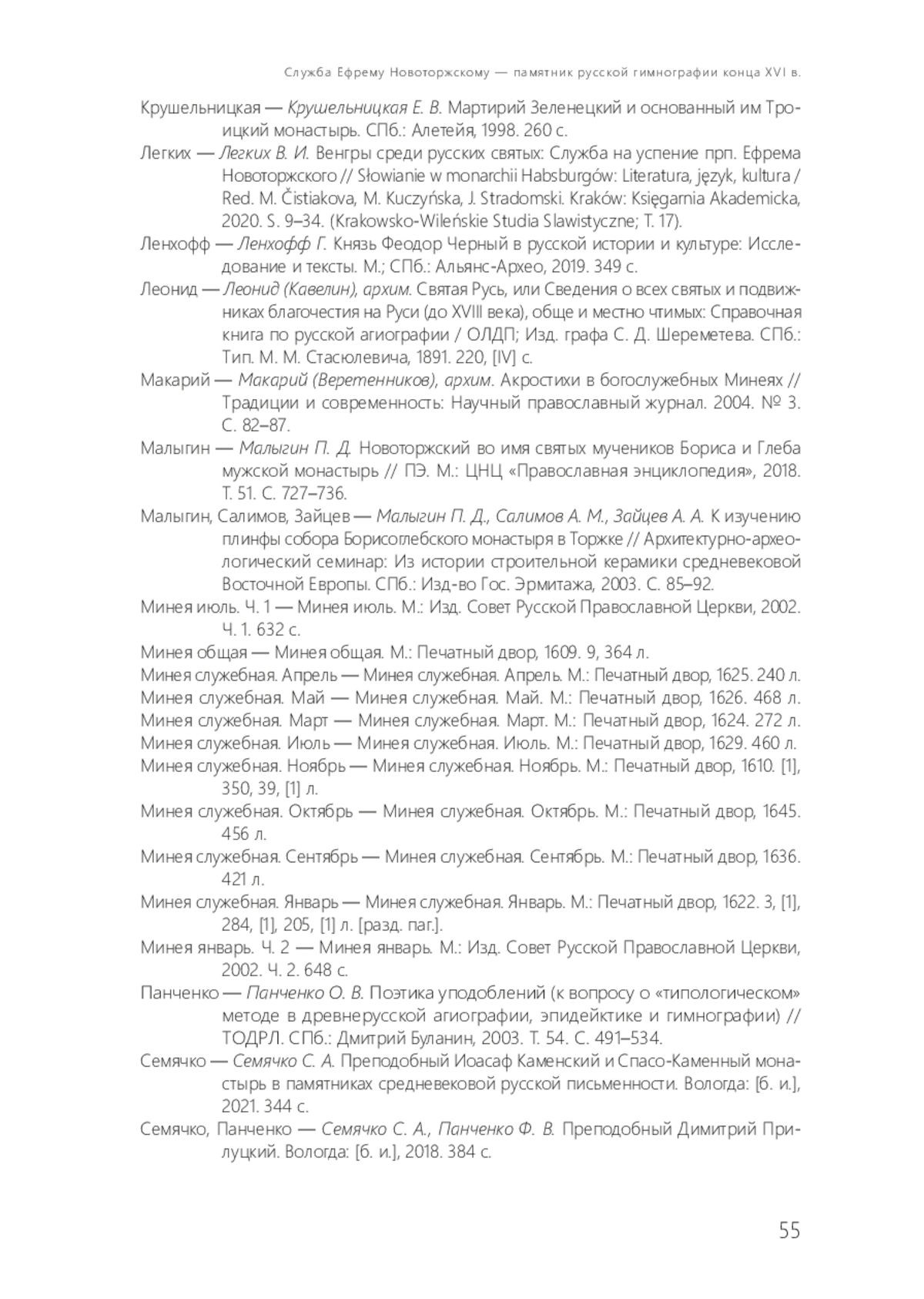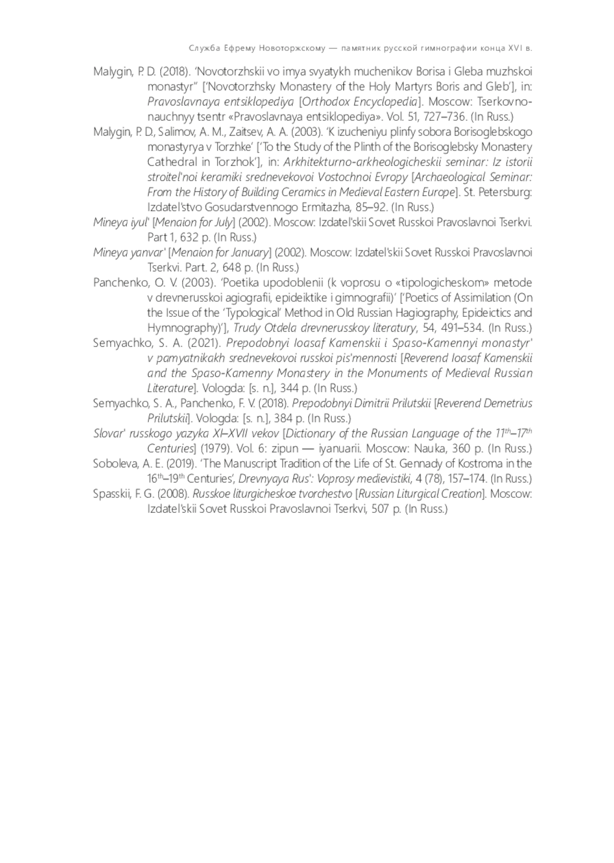 9. Легких В. И. Венгры среди русских святых: Служба на успение прп. Ефрема Новоторжского // Słowianie w monarchii Habsburgów: Literatura, język, kultura / Red. M. Čistiakova, M. Kuczyńska, J. Stradomski. Kraków: Księgarnia Akademicka, 2020. S. 9-34. (Krakowsko-Wileńskie Studia Slawistyczne; Т. 17).