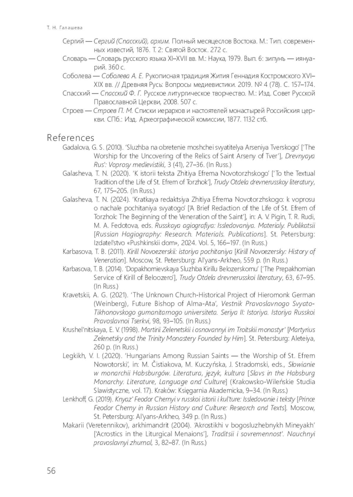 2. Галашева Т. Н. К истории текста Жития Ефрема Новоторжского // ТОДРЛ. СПб.: Наука, 2020. Т. 67. С. 175-205.