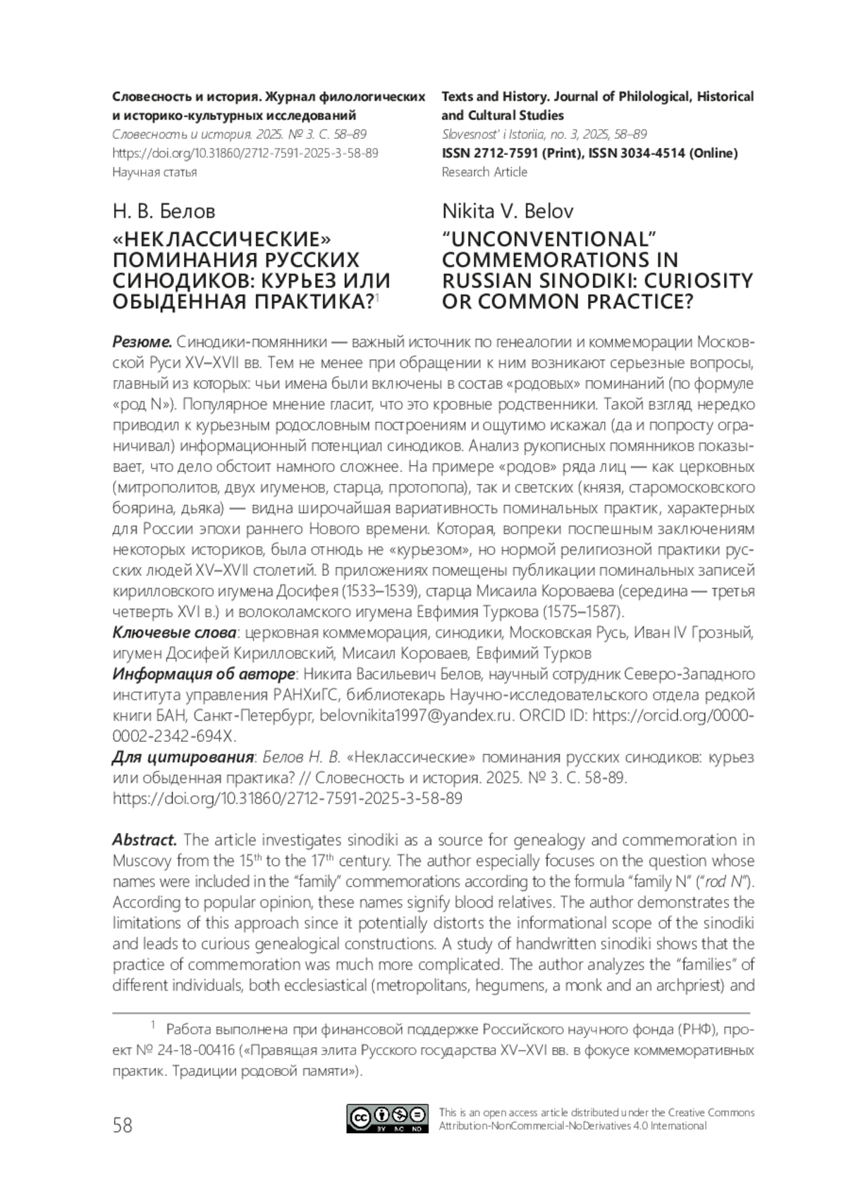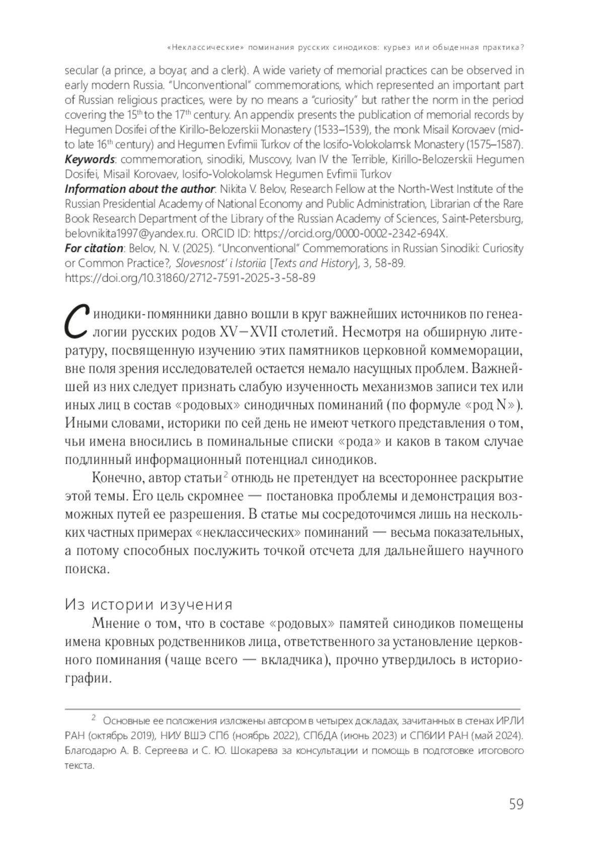 19. Белов Н. В. Новые данные о книжниках XVI в. (по материалам синодика Троице-Сергиева монастыря 1575 г.) // Герменевтика древнерусской литературы. М.: ИМЛИ РАН, 2025. Сб. 24. С. 590-614.