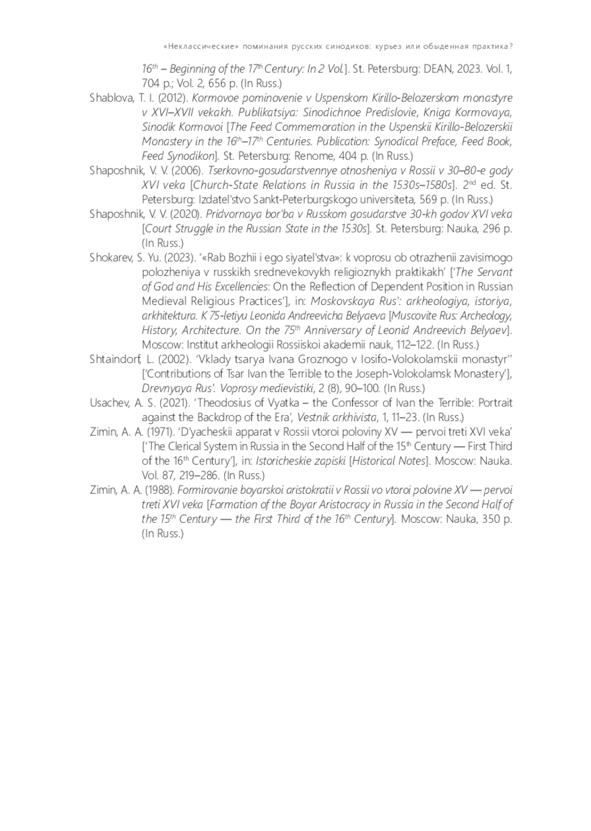 88. Шокарев С. Ю. «Раб Божий и его сиятельства»: к вопросу об отражении зависимого положения в русских средневековых религиозных практиках // Московская Русь: археология, история, архитектура: К 75-летию Леонида Андреевича Беляева. М.: ИА РАН, 2023. С. 112-122.