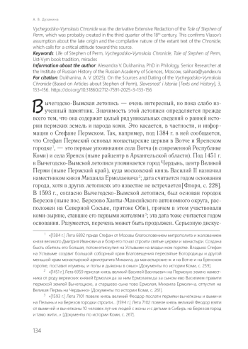 6. Духанина А. В. Вторая Проложная редакция Жития Стефана Пермского, связанная с общерусской канонизацией святителя // Древняя Русь: Вопросы медиевистики. 2018. № 4 (74). С. 129-150.