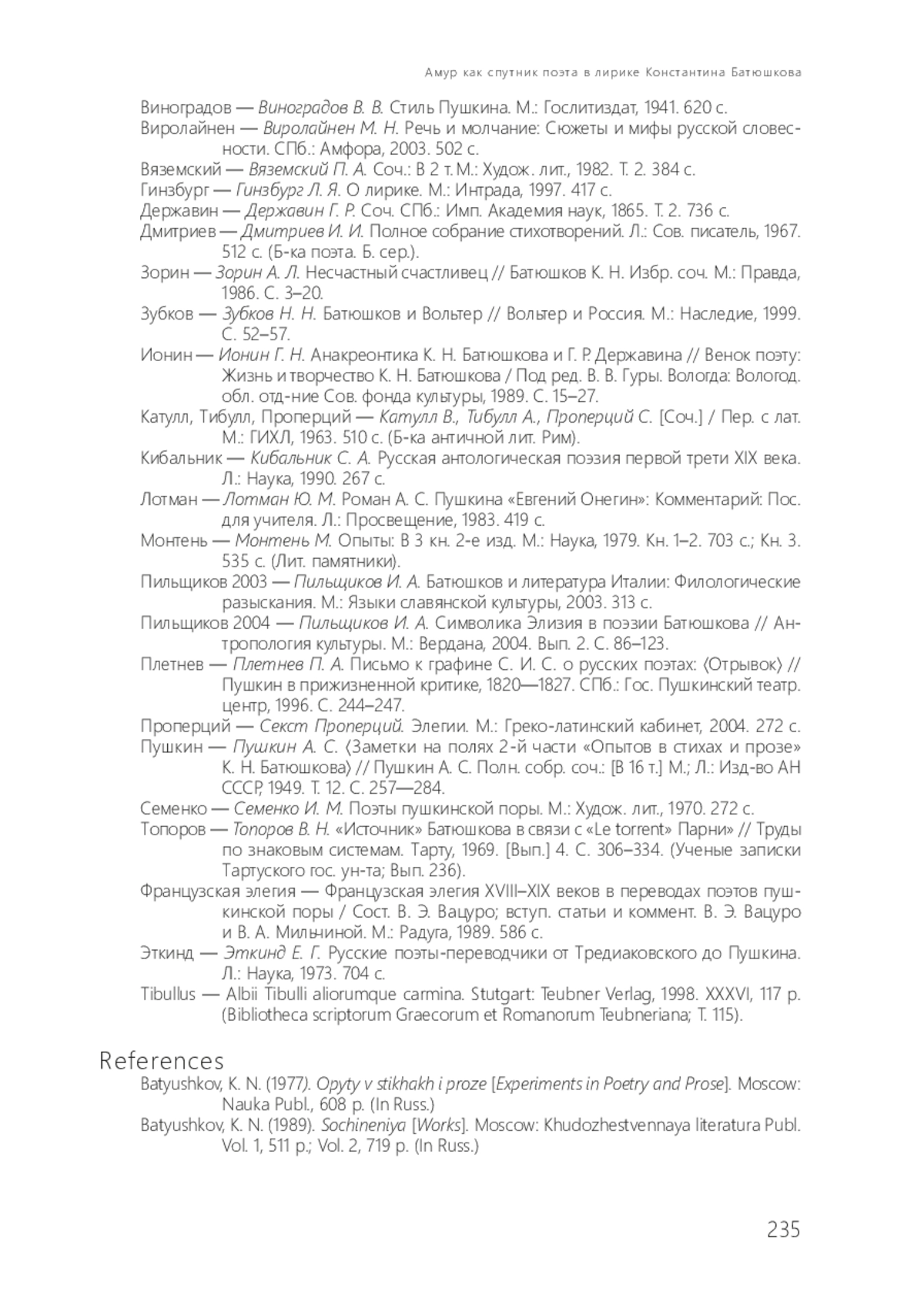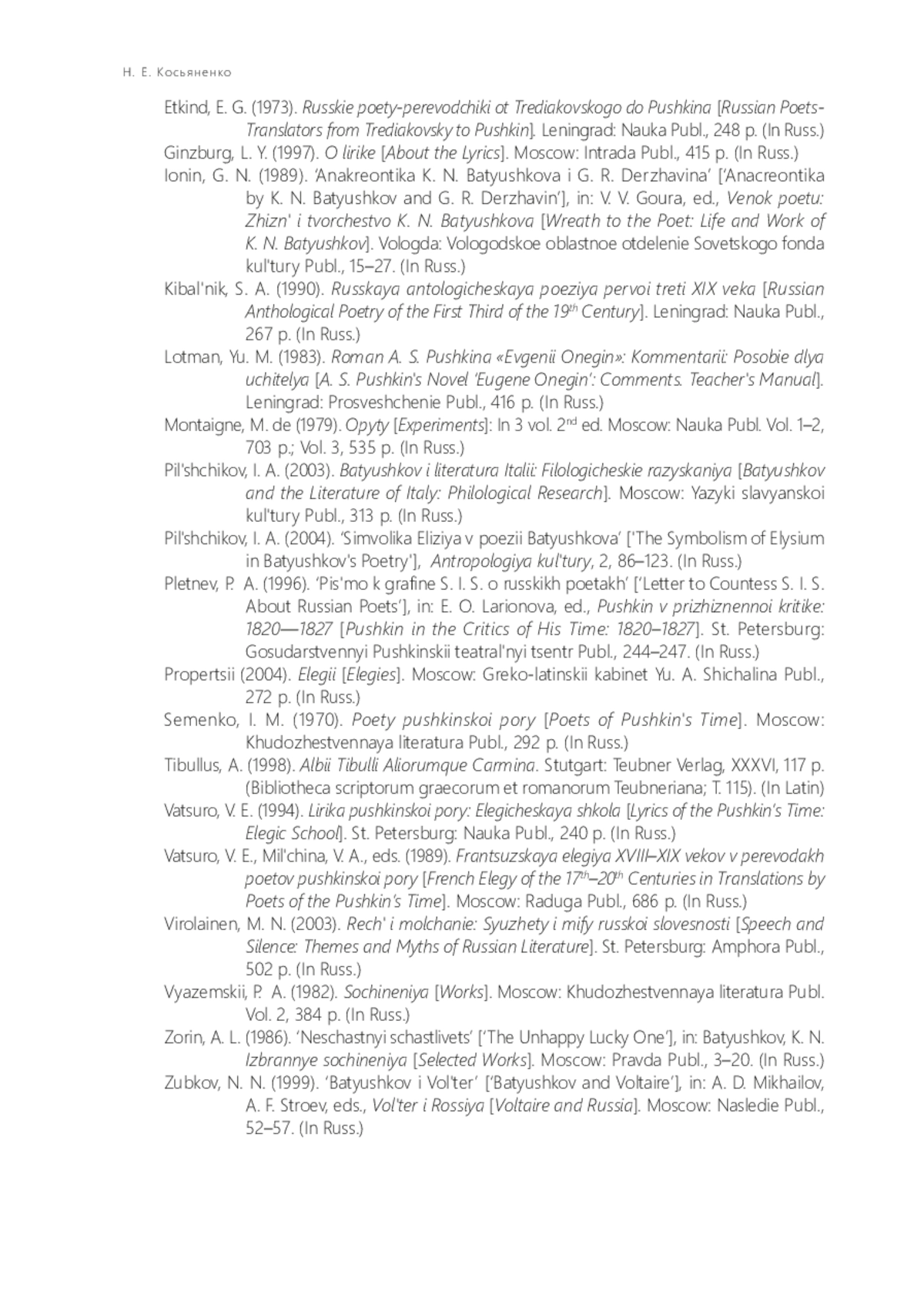 4. Батюшков К. Н. Соч.: В 2 т. / Ред. А. В. Кошелев, А. Л. Зорин. М.: Худож. лит., 1989. Т. 1. 515 с.; Т. 2. 721 с.