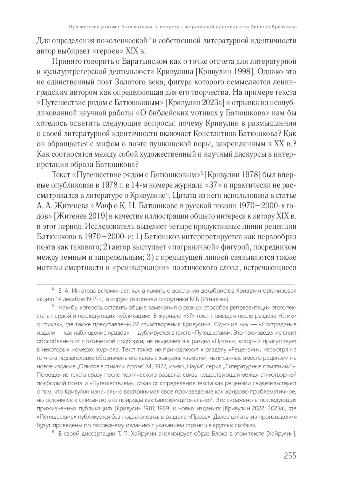 10. Кривулин В. Б. Путешествие рядом с Батюшковым // 37. 1978. № 14. С. 201-213.