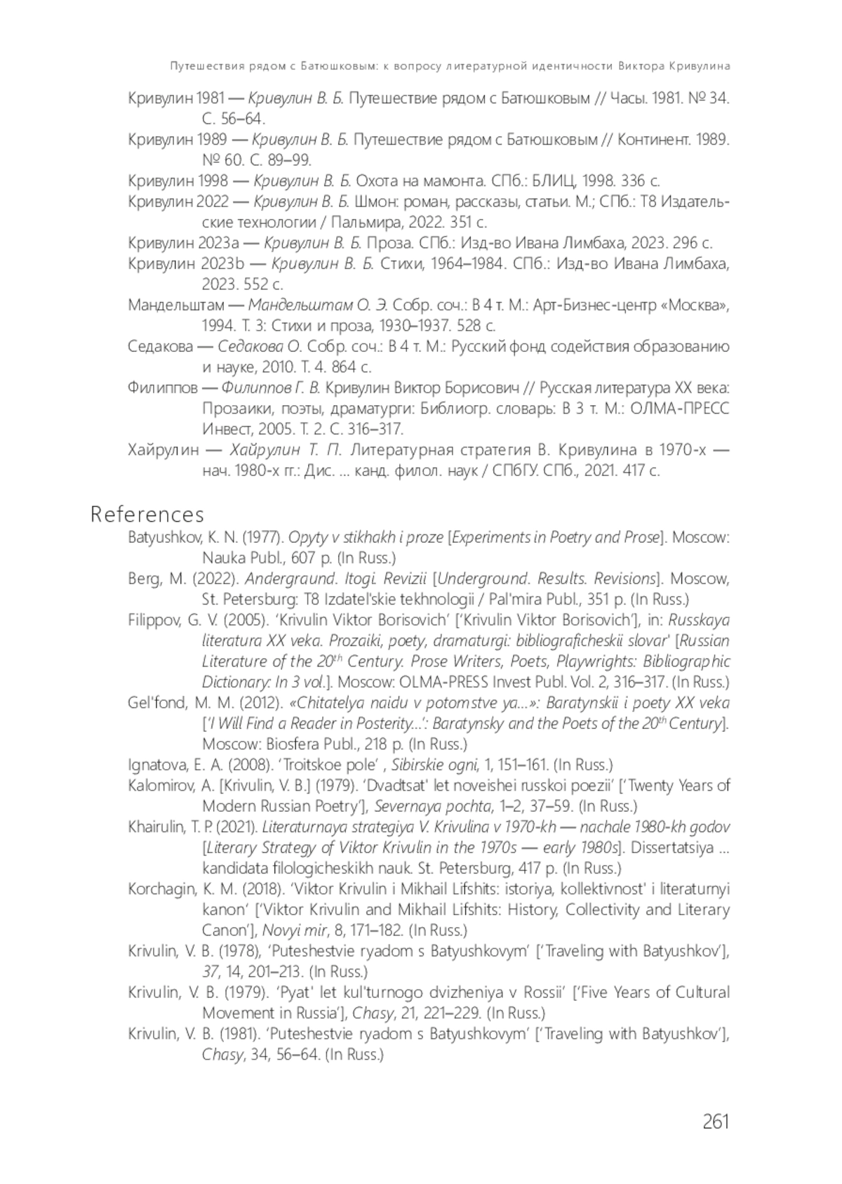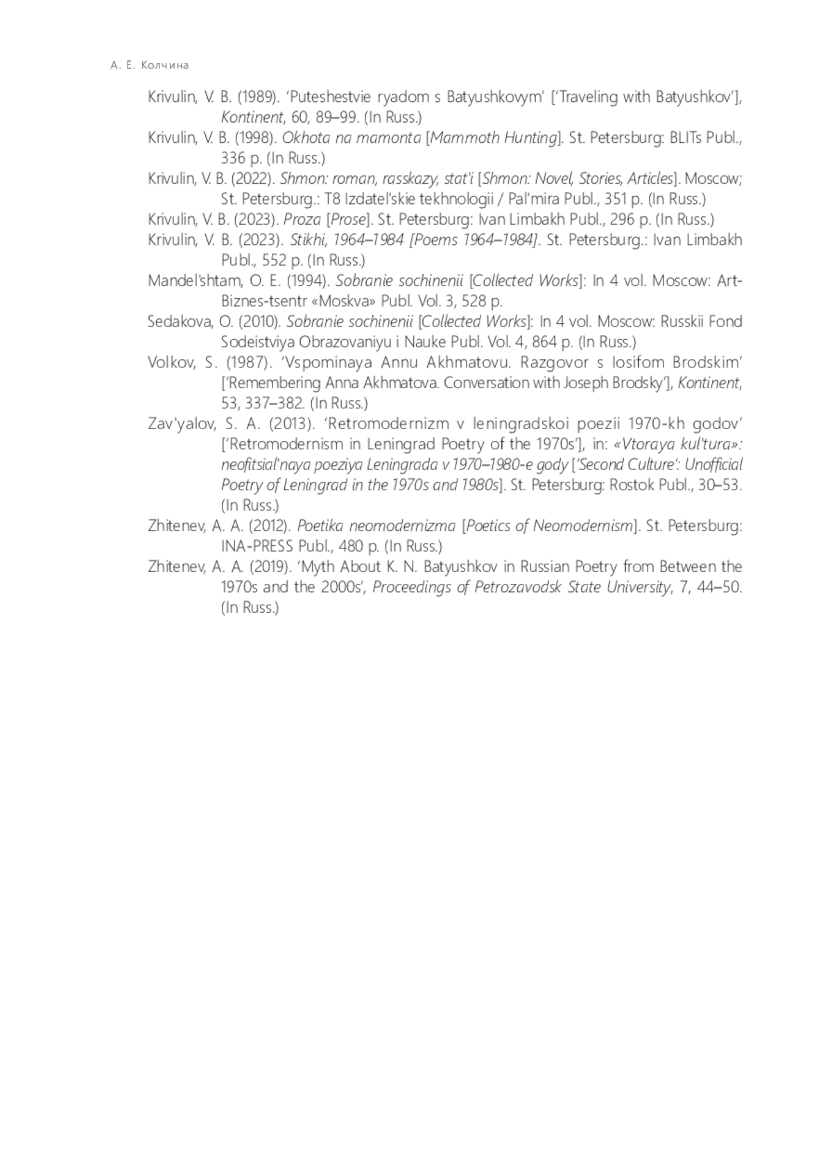 14. Кривулин В. Б. Путешествие рядом с Батюшковым // Континент. 1989. № 60. С. 89-99.