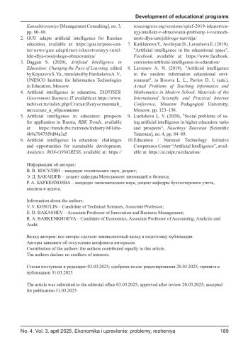 4. Искусственный интеллект в образовании // TADVISER. Государство. Бизнес. ИТ. - 2020. - 26.01.