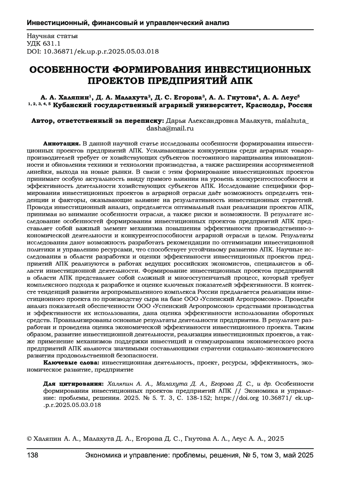 1. Алексеева Н. А., Рыжкова О. И., Пименова Н. Б. Ориентиры инвестиционного развития сельского хозяйства региона // Вестник Удмуртского университета. Серия: Экономика и право. - 2025. - Т. 35, № 1. - С. 17-24. EDN: HOKWGJ