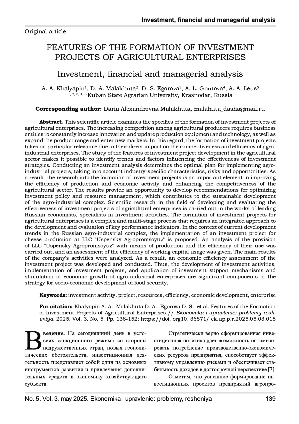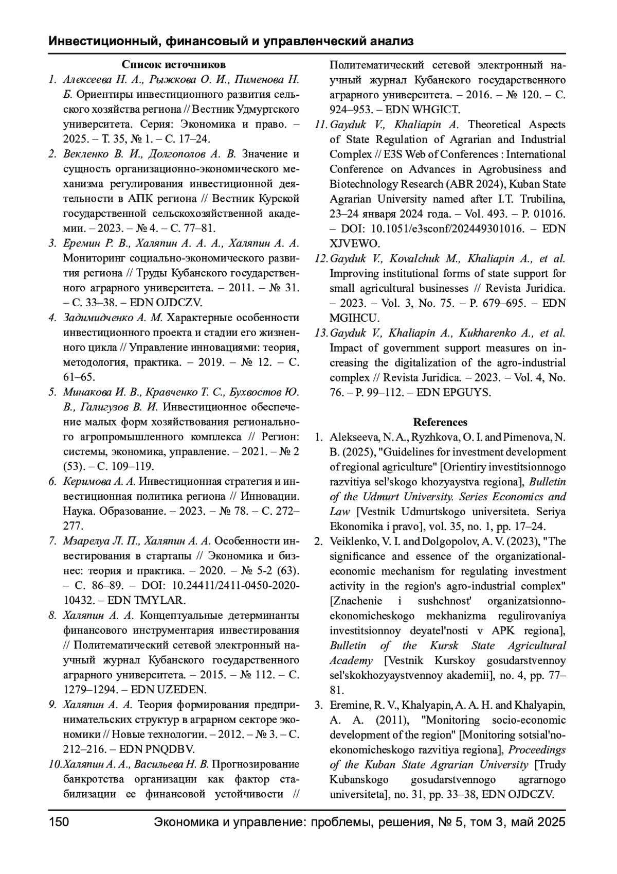 12. Gayduk V., Kovalchuk M., Khaliapin A., et al. Improving institutional forms of state support for small agricultural businesses // Revista Juridica. - 2023. - Vol. 3, No. 75. - P. 679-695. EDN: MGIHCU