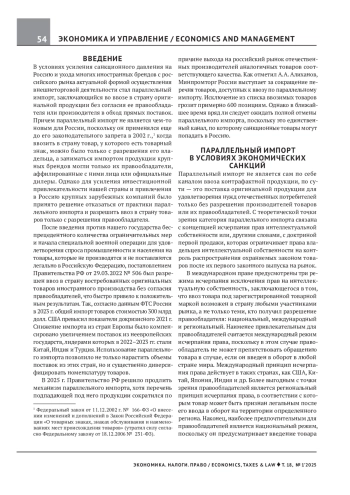 2. Голубчик А. М., Пак Е. В. Некоторые моменты параллельного импорта в Россию. Российский внешнеэкономический вестник. 2022;(10):31-33.