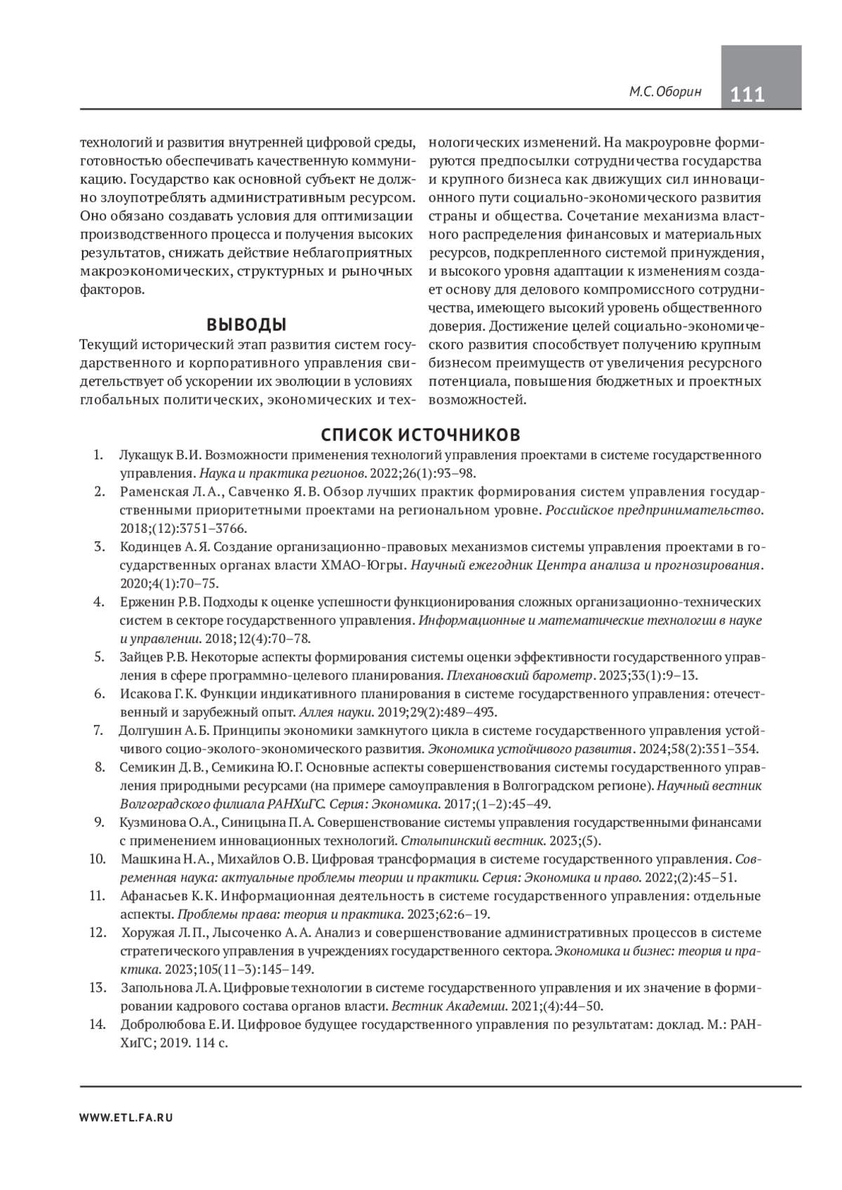 4. Ерженин Р. В. Подходы к оценке успешности функционирования сложных организационно-технических систем в секторе государственного управления. Информационные и математические технологии в науке и управлении. 2018;12(4):70-78. EDN: YVODET