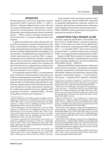 Международная налоговая реформа, инициированная ОЭСР в проектах Pillar‑1 +, Pillar‑2 Solution 1, набирает обороты более чем в 140 странах мира, внедряющих в национальное законодательство необходимые механизмы налогообложения многонациональных групп компаний (далее — МГК), препятствующие размыванию налоговой базы в условиях цифровизации экономики