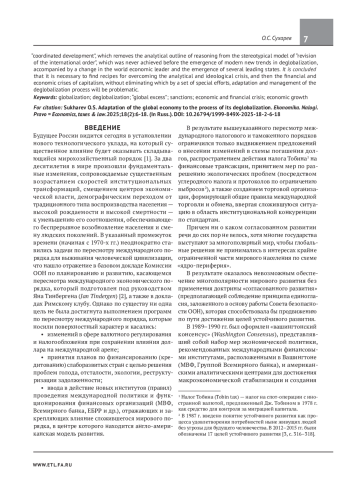 18. Сухарев О. С. Теория реструктуризации экономики. М: Ленанд; 2016. 256 с. EDN: YONSRX